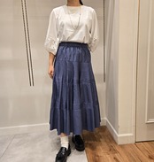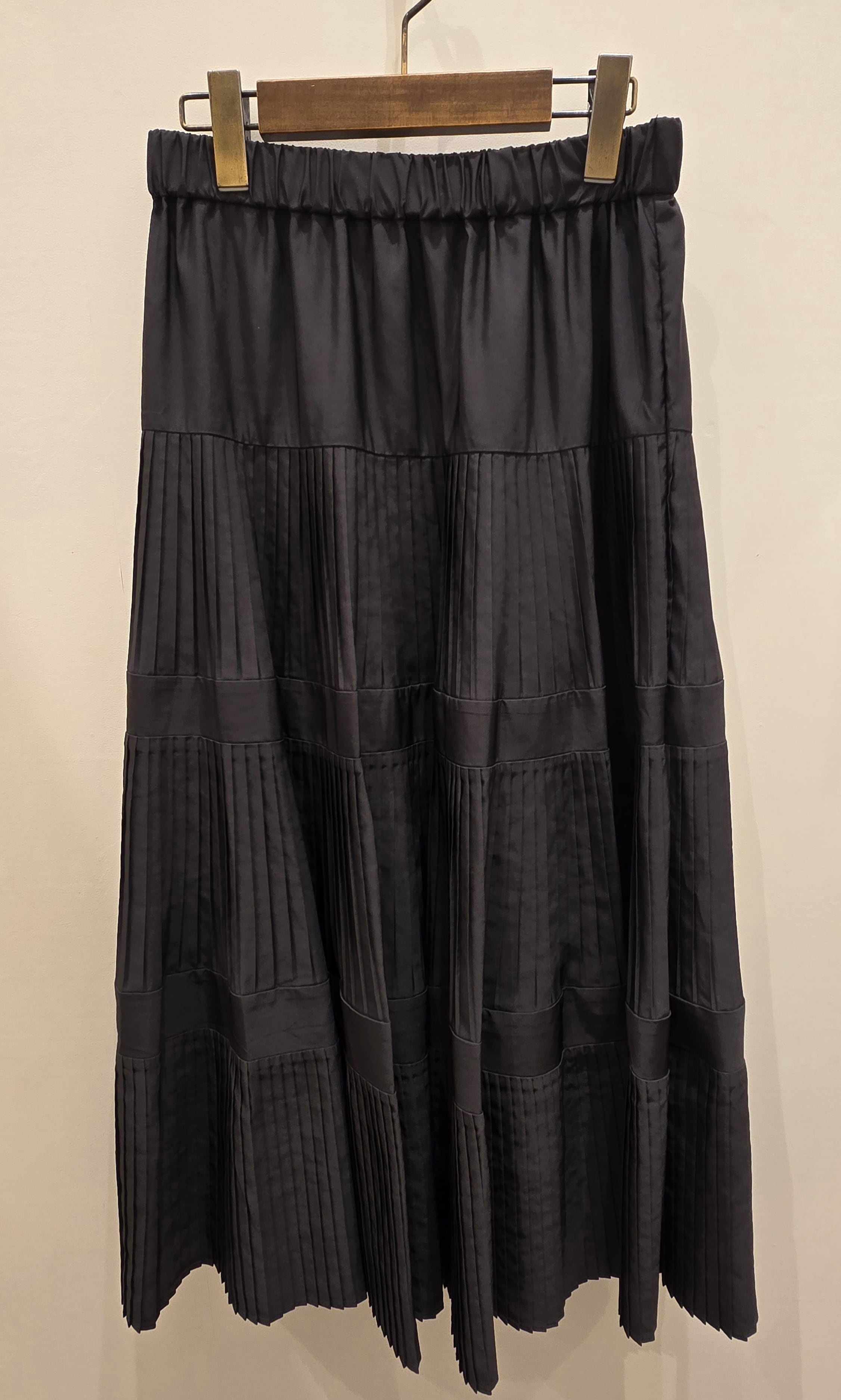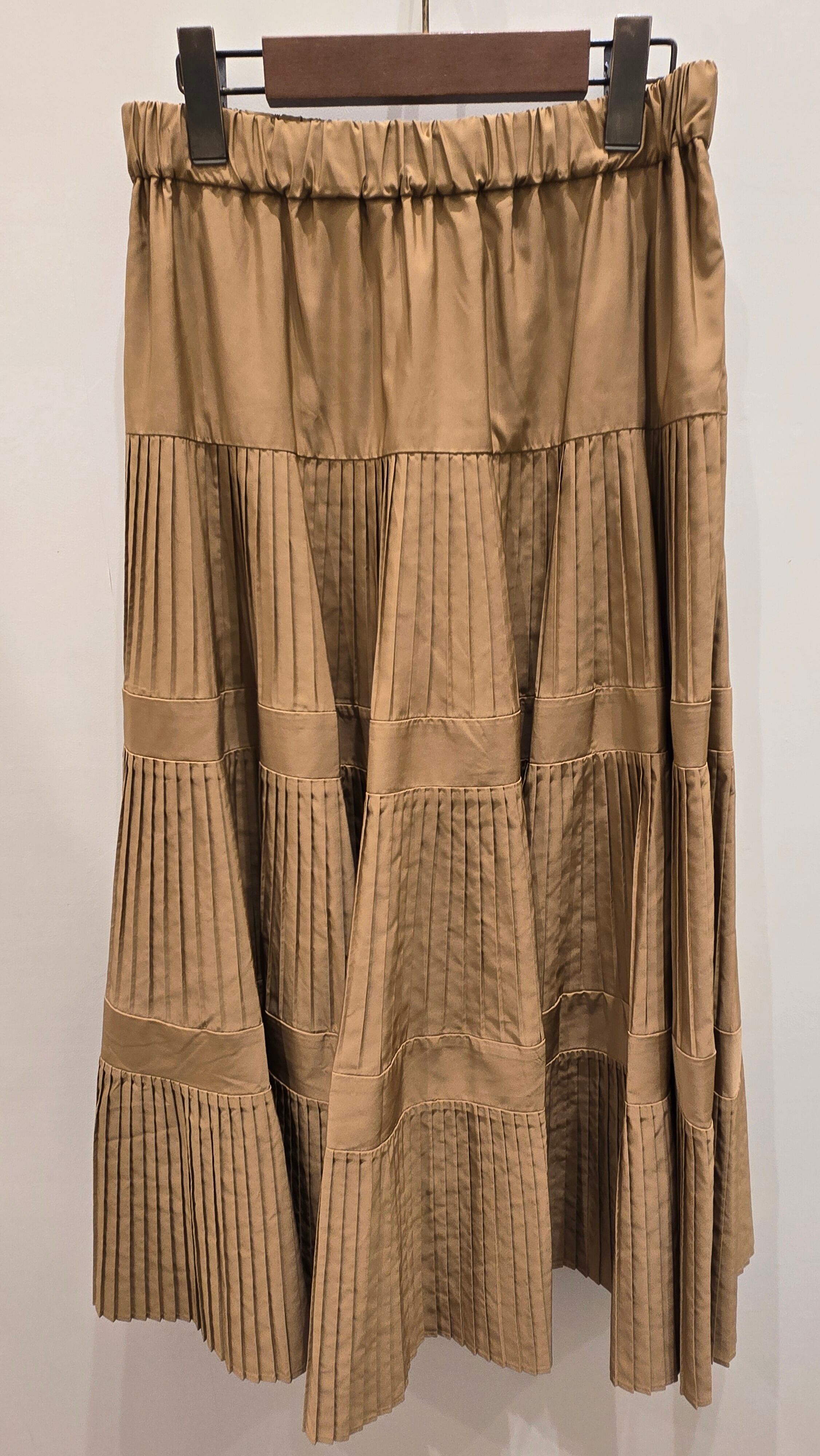 プリーツに段階をつける事でボリューム感を抑えた程よいフレアシルエットです。