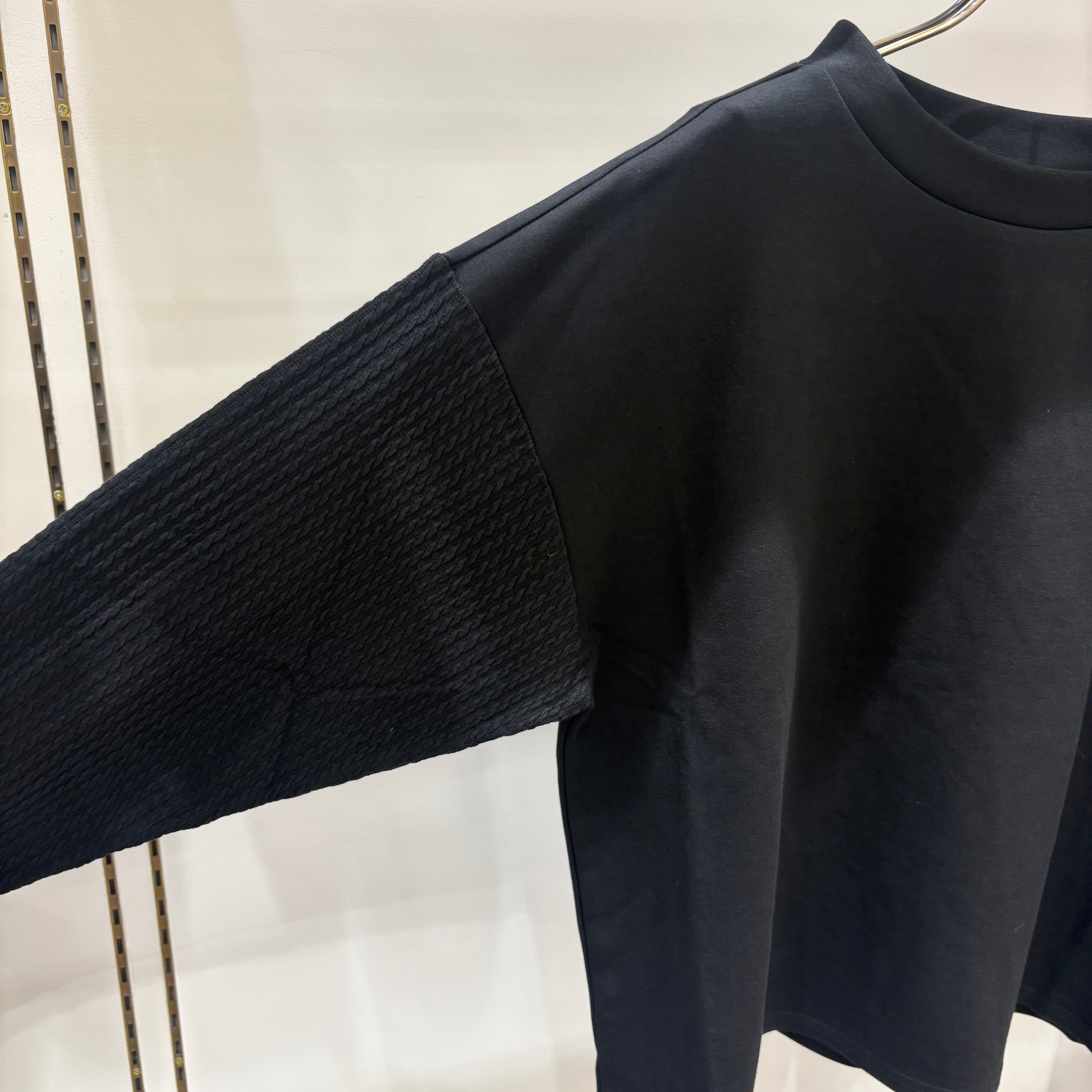 お袖がジャカード素材で切り替えたデザインがアクセントになる一枚。