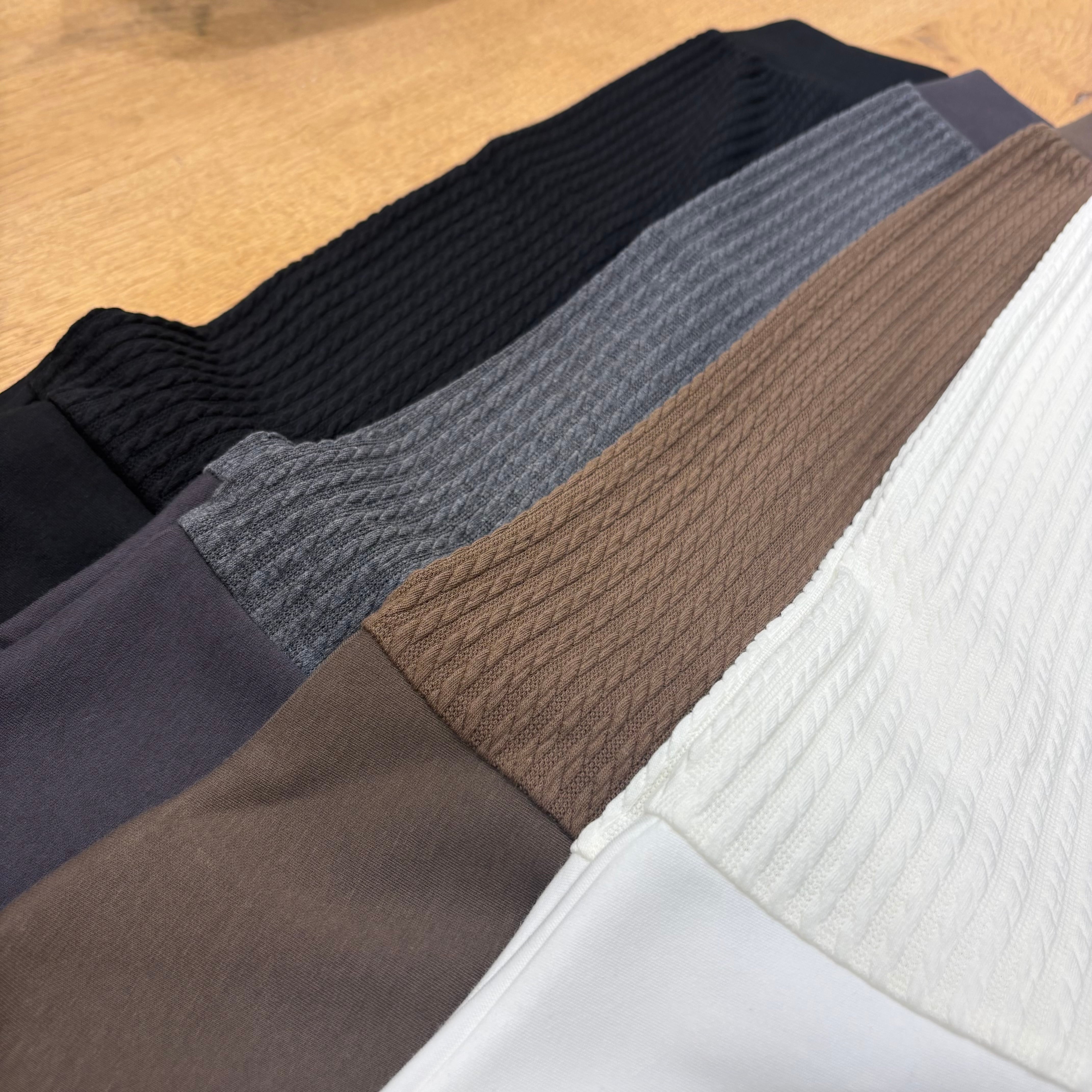 ケーブル網のジャカードが甘すぎず、カジュアルにもきれいめにも着回せるため、オンオフ両方使いやすいです。