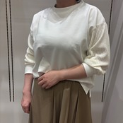 程良い厚みと滑らかな表面感がカットソーながら、上品な印象。