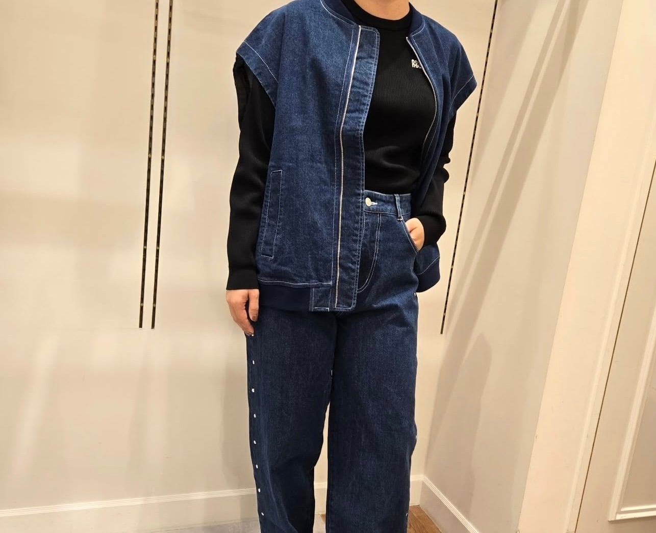 ベストのアームホールはゆったりしたサイズ感となりますので、Tシャツからトレーナー、ニットの季節と長い期間コーディネートをお楽しみ頂けます。