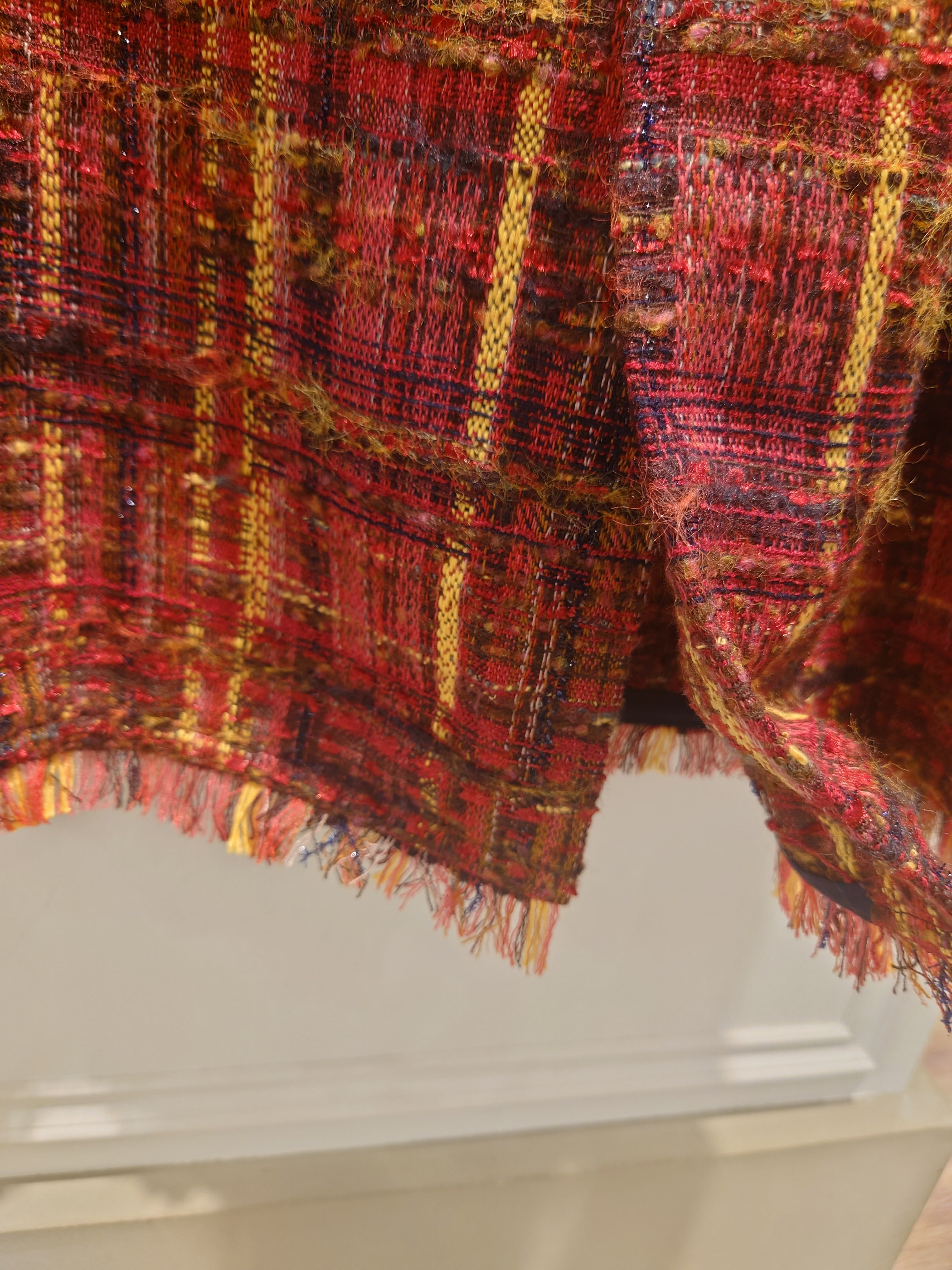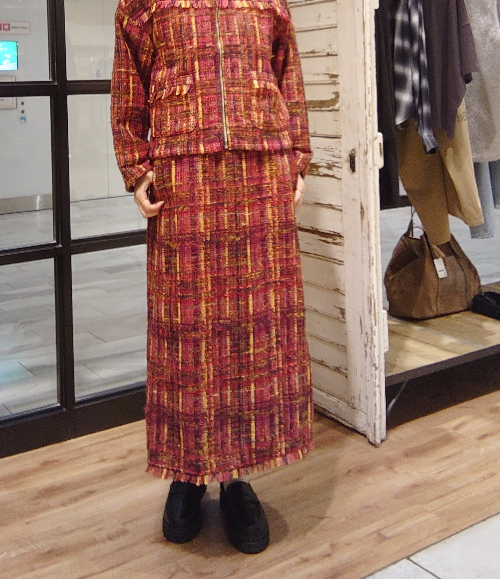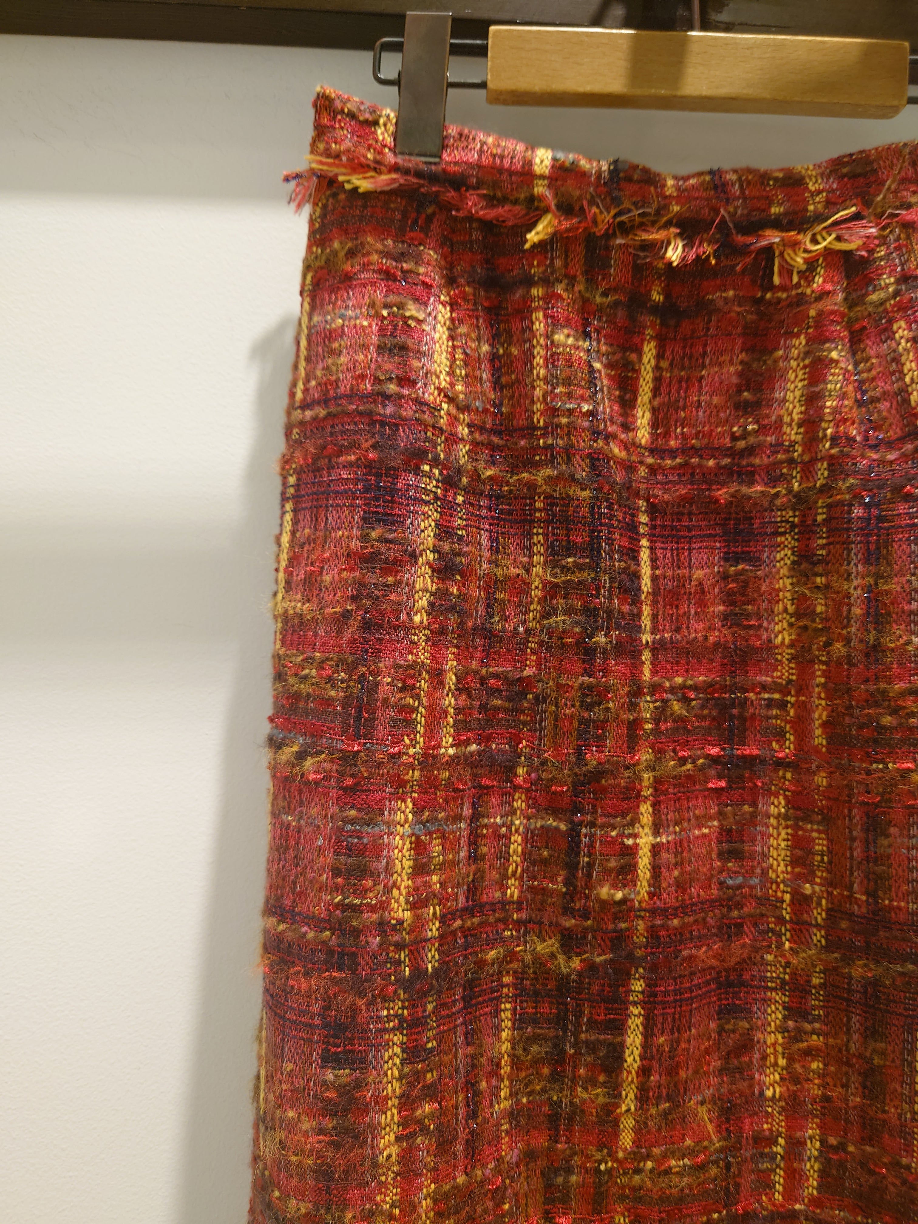 ツィードですが裾など部分的にフリンジを施し動きを出しているスカート。