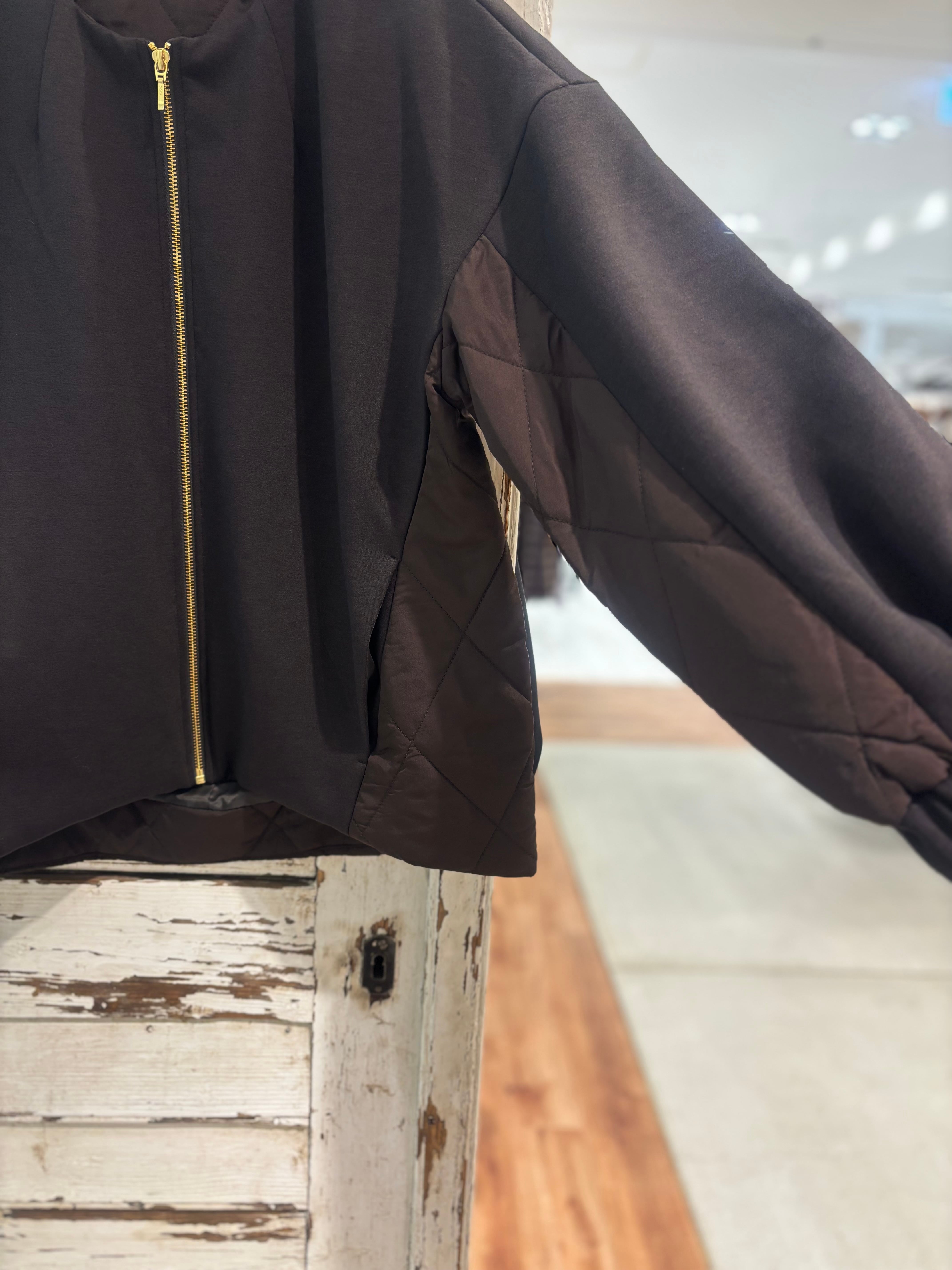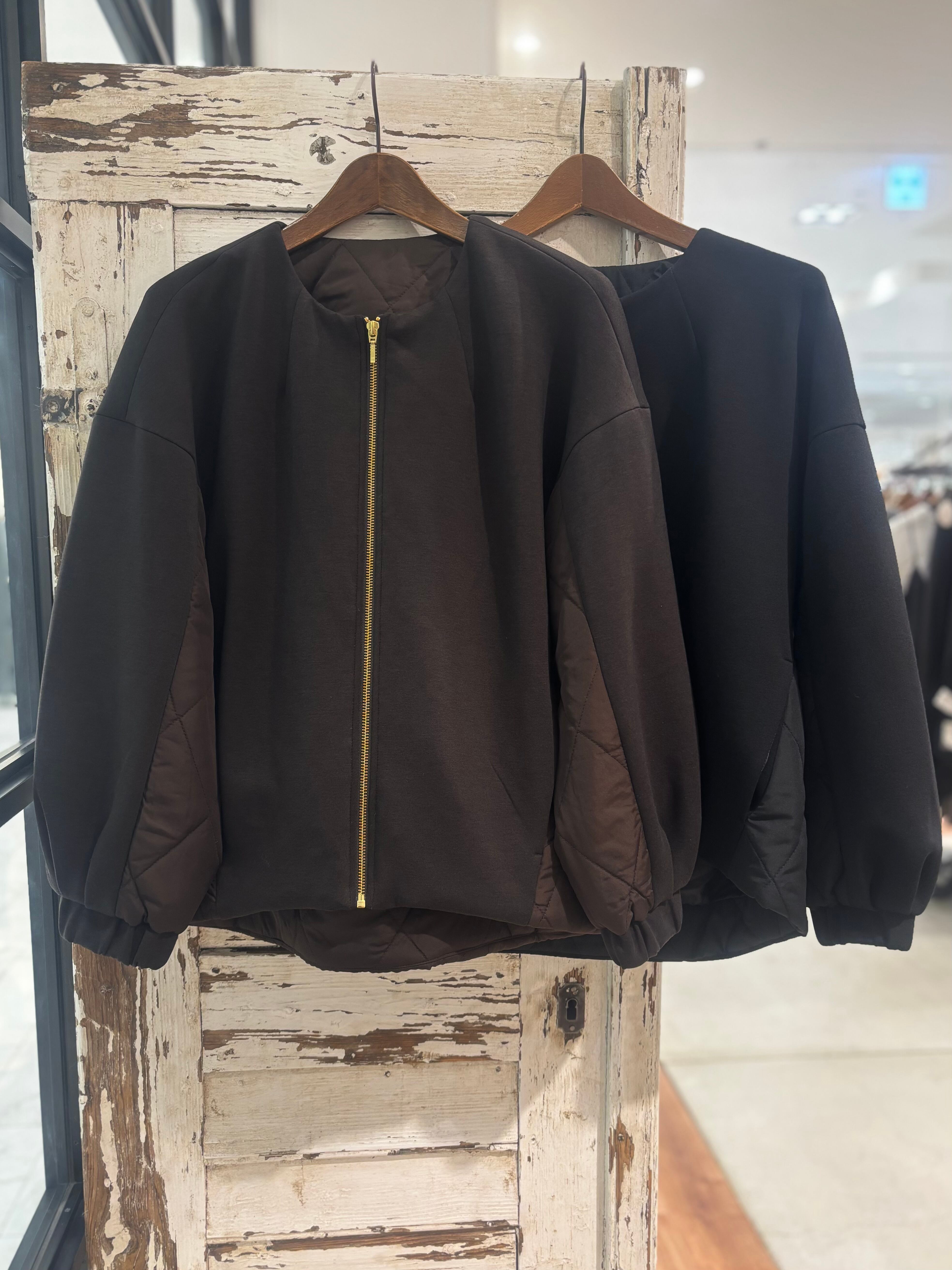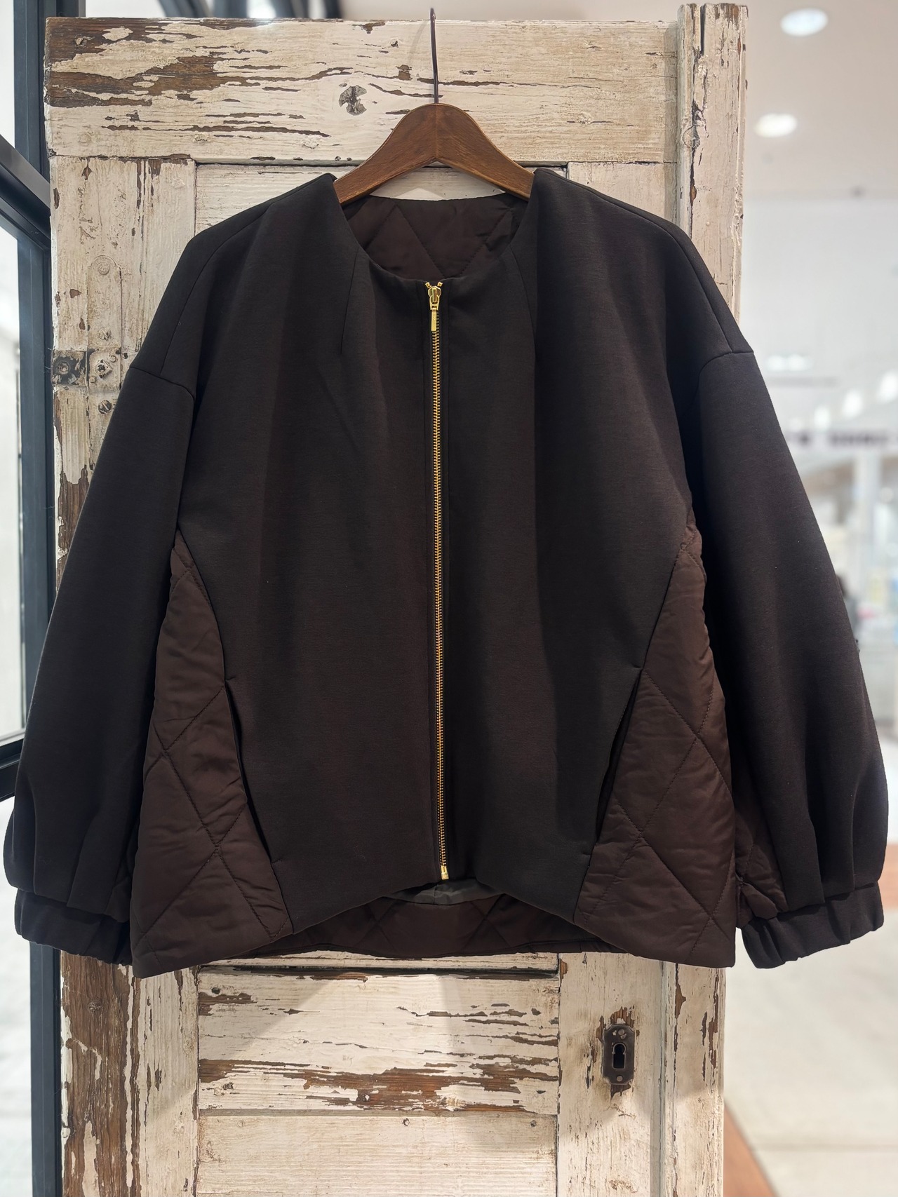 キルティング素材との切り替えがオシャレなデザインのブルゾン。
