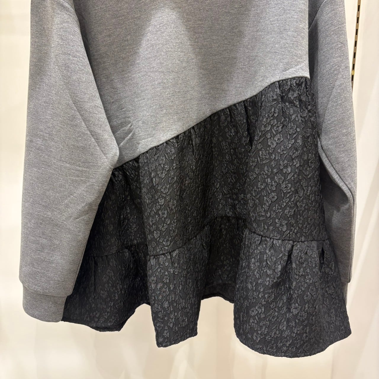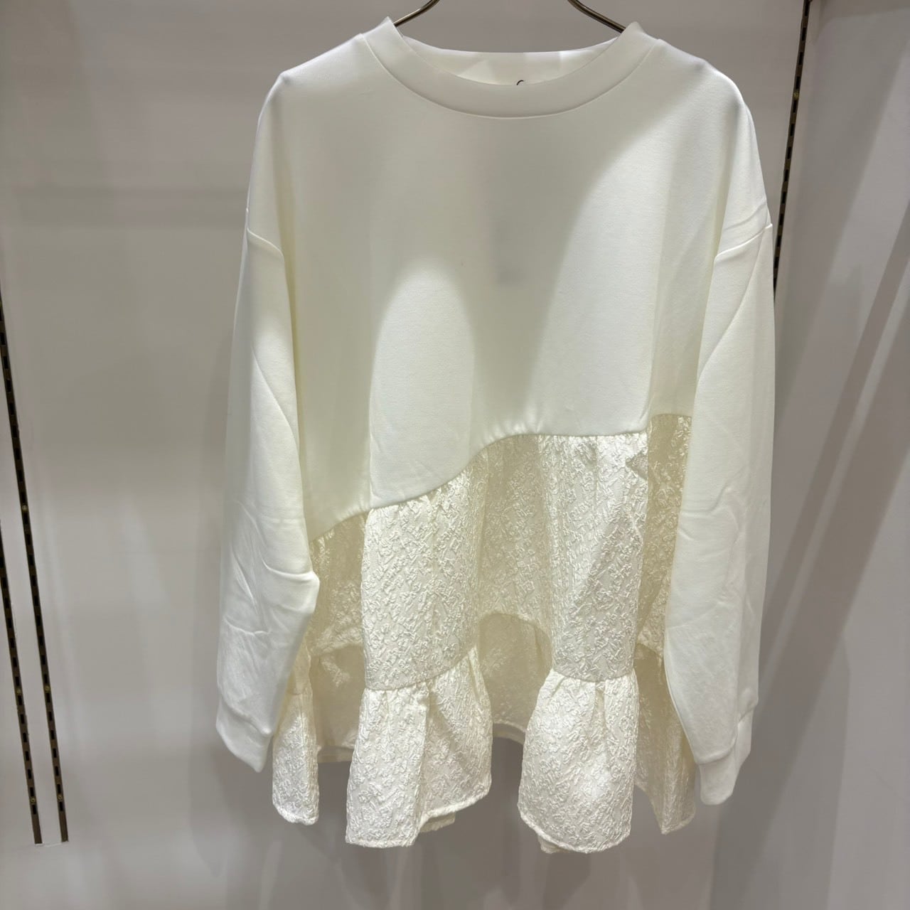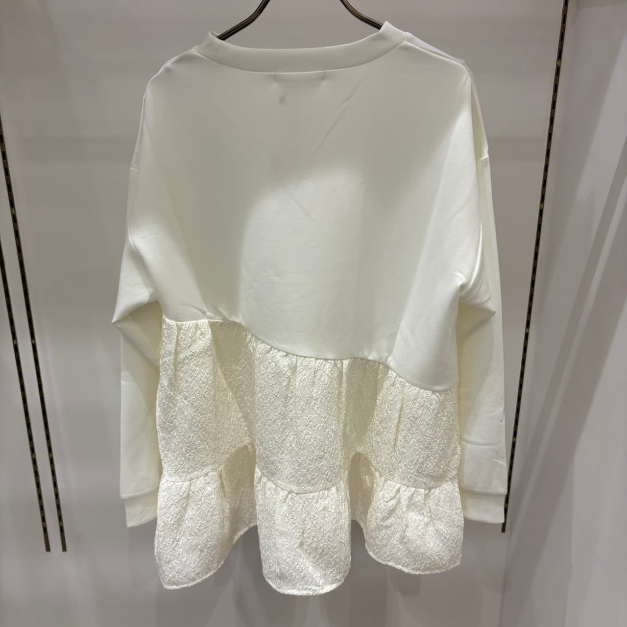 裾を膨れジャガード素材で切り替えドッキングした、一枚で華やかなトップスです。