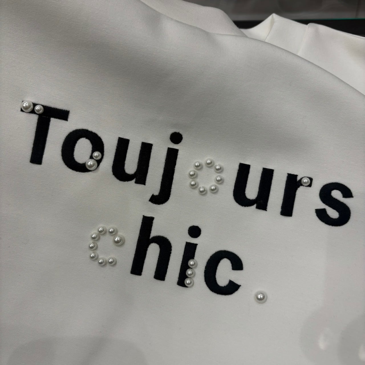 ロゴ部分は立体的な刺繍とパールの組み合わせ。