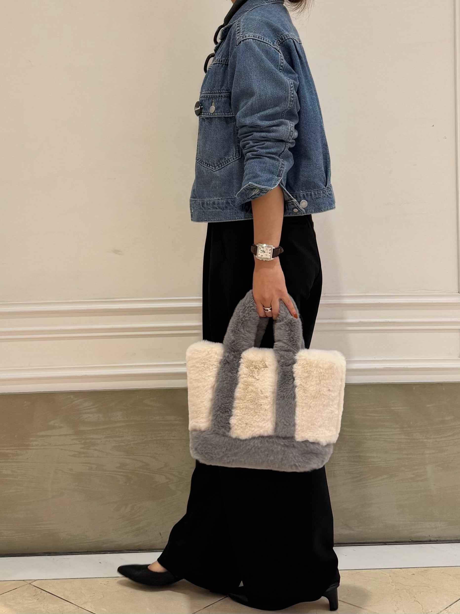 配色がかわいい、モコモコのエコファー仕様のトート BAGが入荷いたしました!