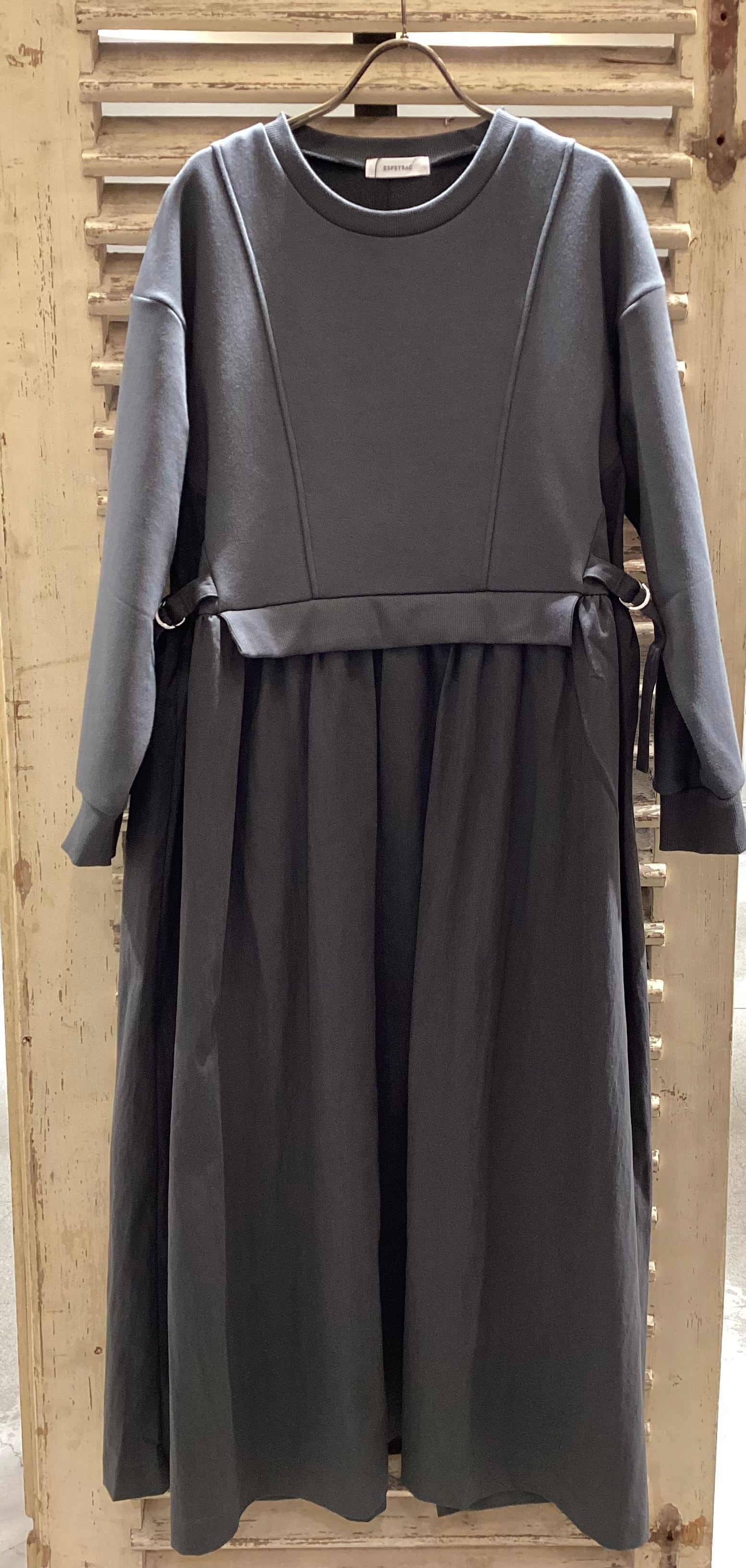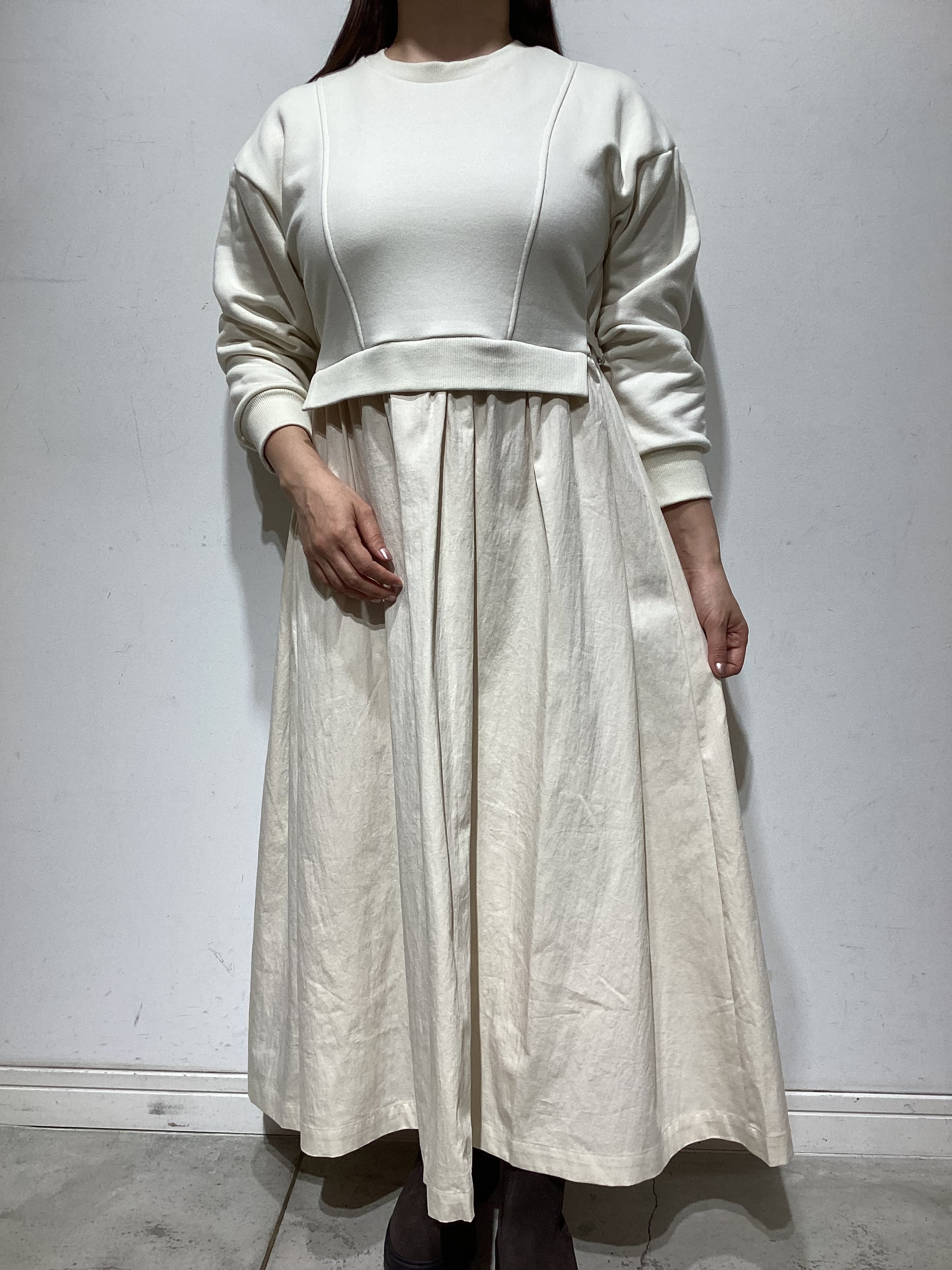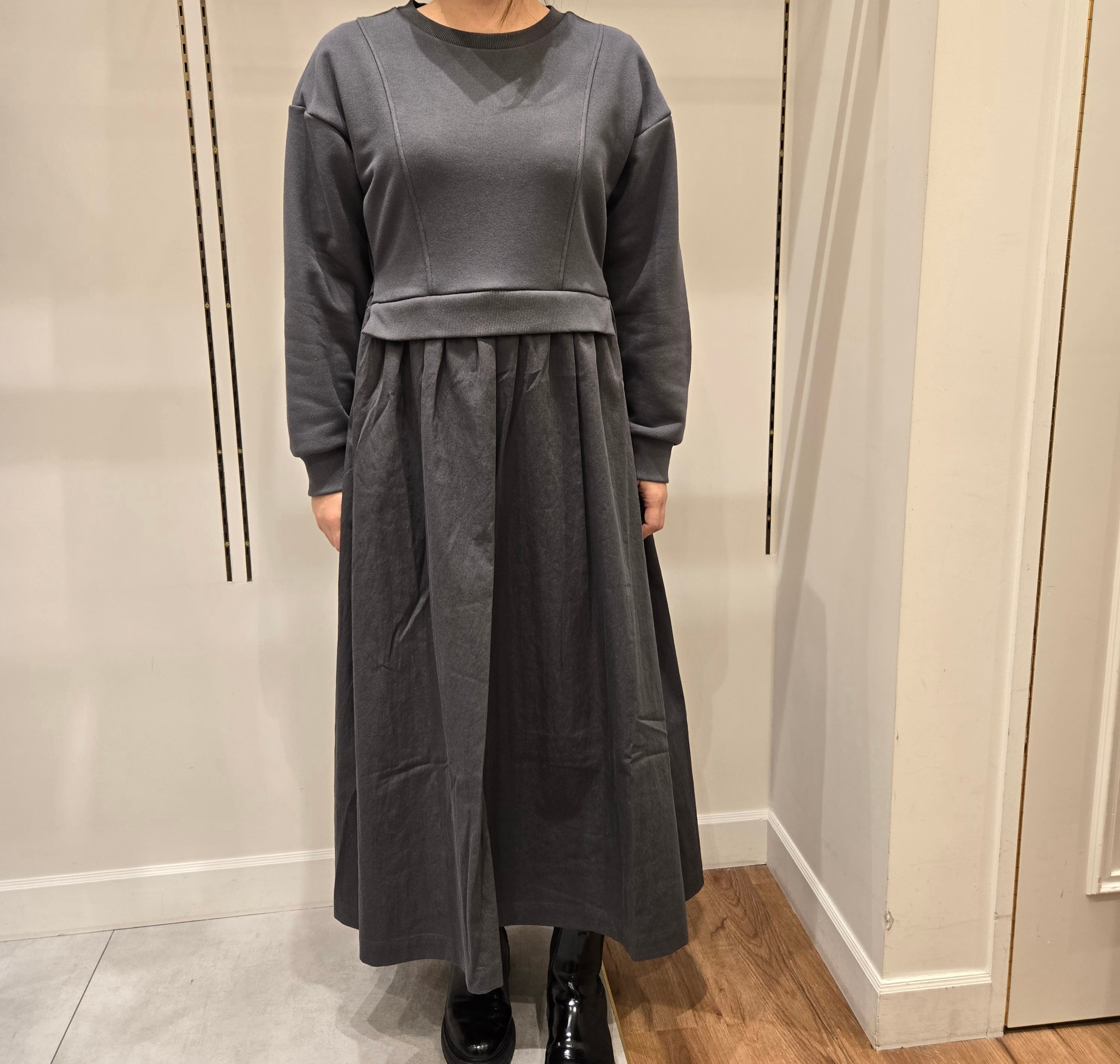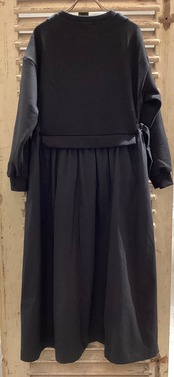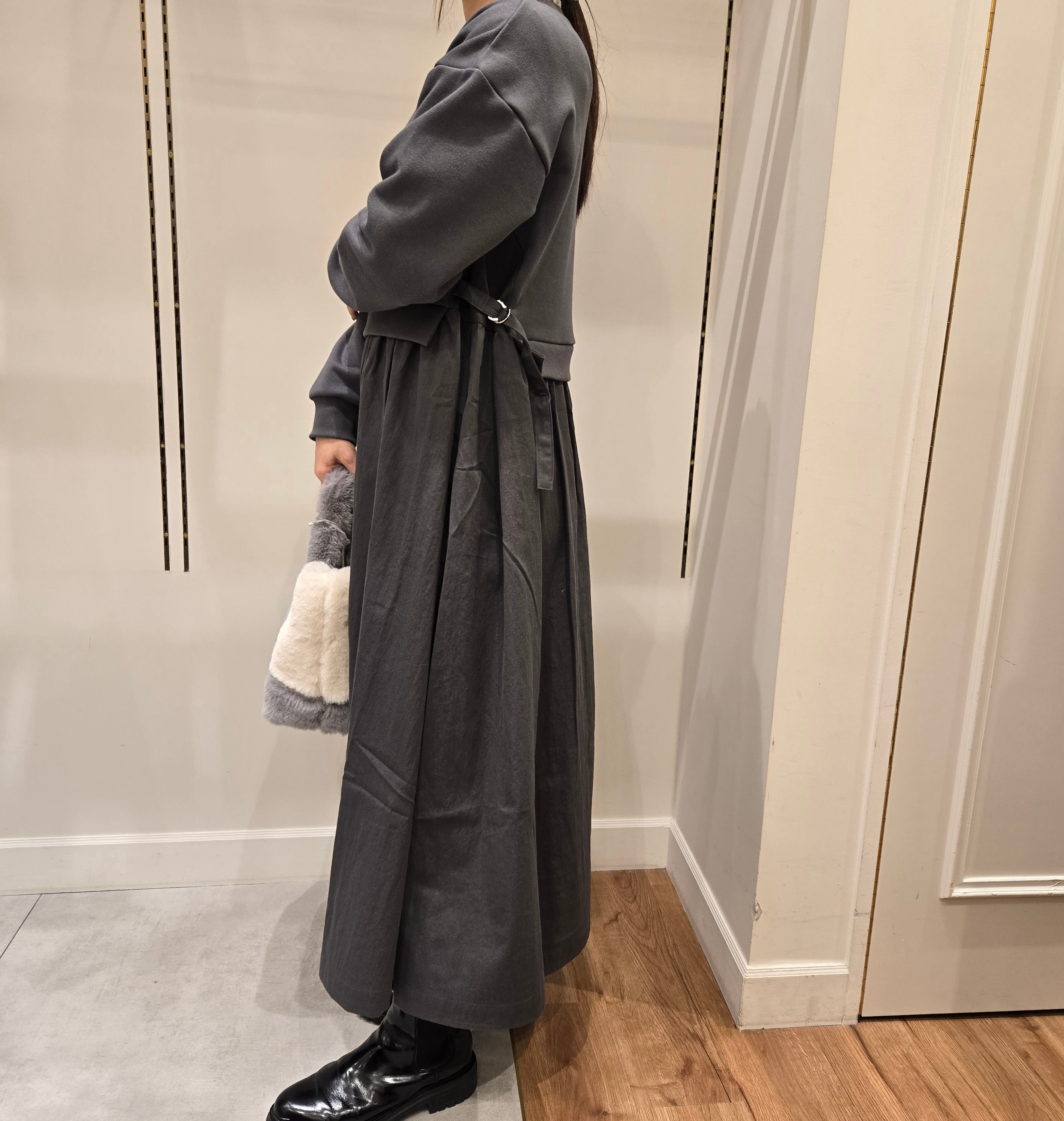 首、袖はリブ素材で着用しやすく、スカートは裏付きなので、寒くなるこれからの季節にお使い頂きやすいワンピースです。