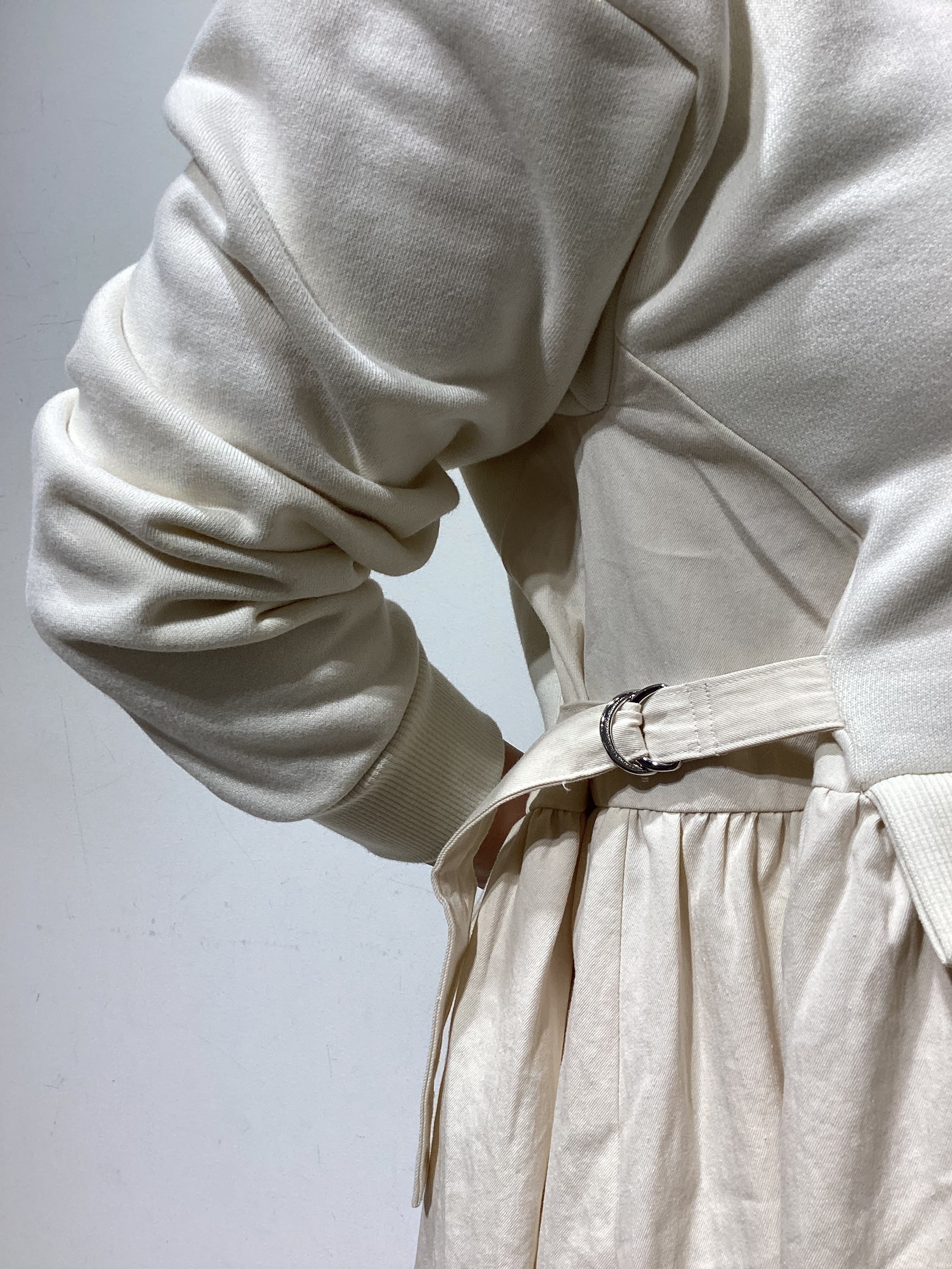 見頃は裏毛、スカート部分はコットンナイロン素材を使用した布帛素材 です。