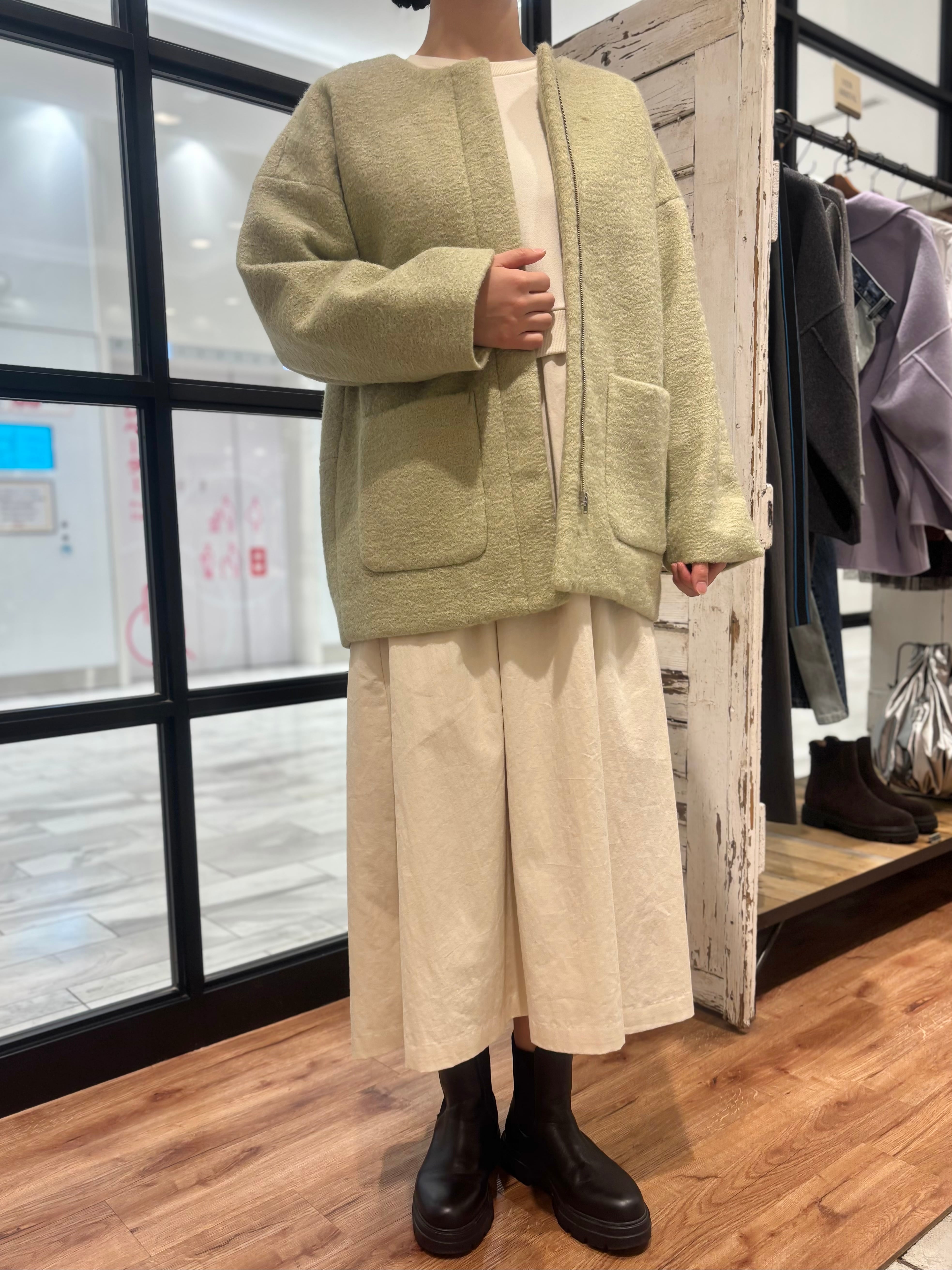 後ろのシルエットは少しコクーンになっているので着膨れせず、ヒップカバーできる丈感もいいですよ!