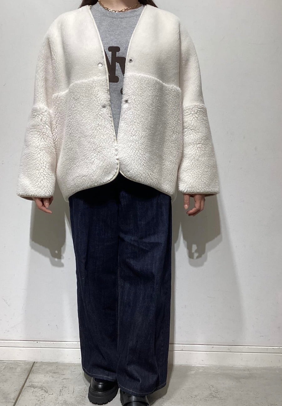 毛足で切り替えたボアと滑らかな質感のフェイクムートンを両方楽しめる着回し力抜群のアウターです。
