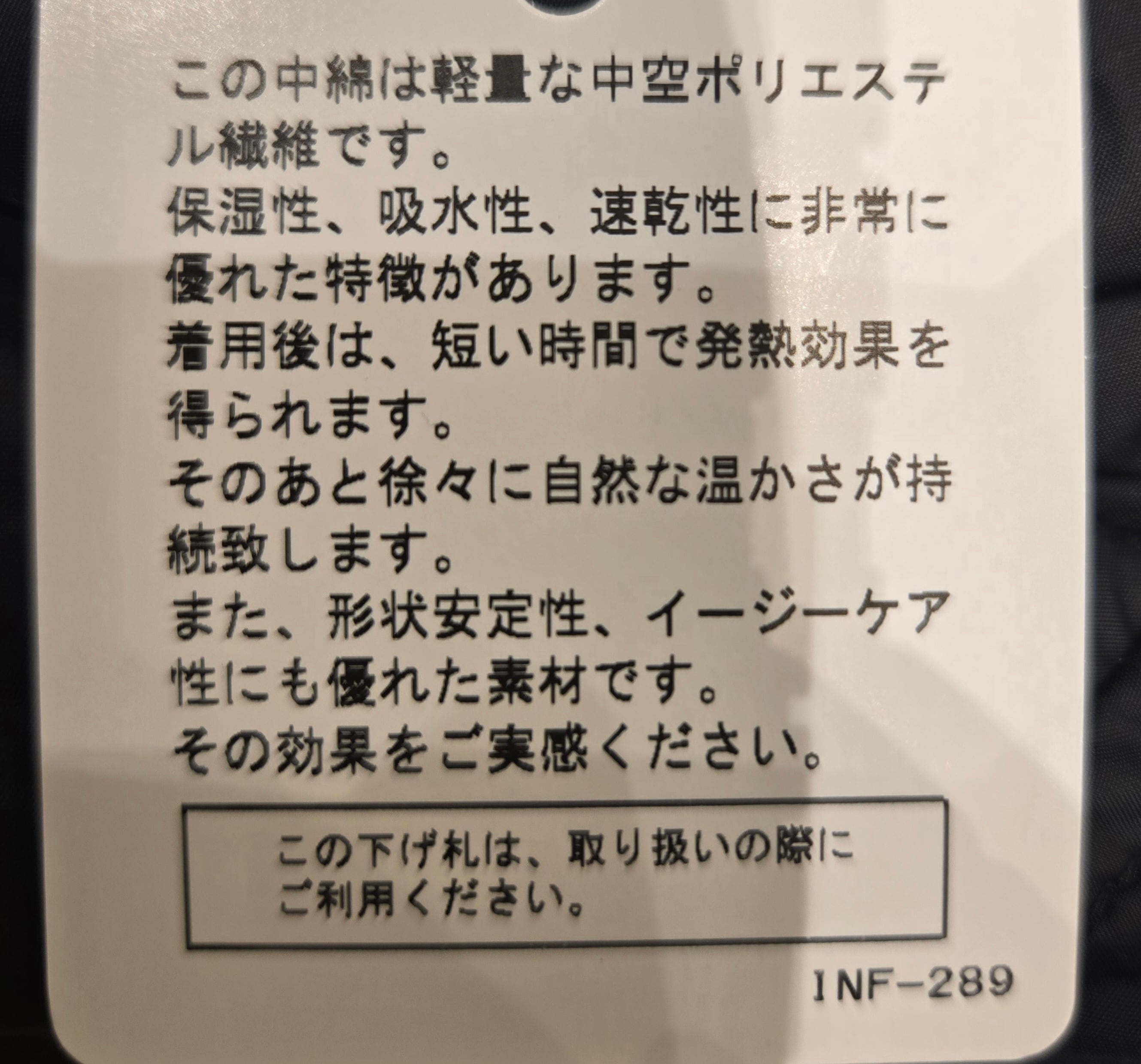 軽やかであたたかい中綿は、寒い日でも快適に過ごすことができます。