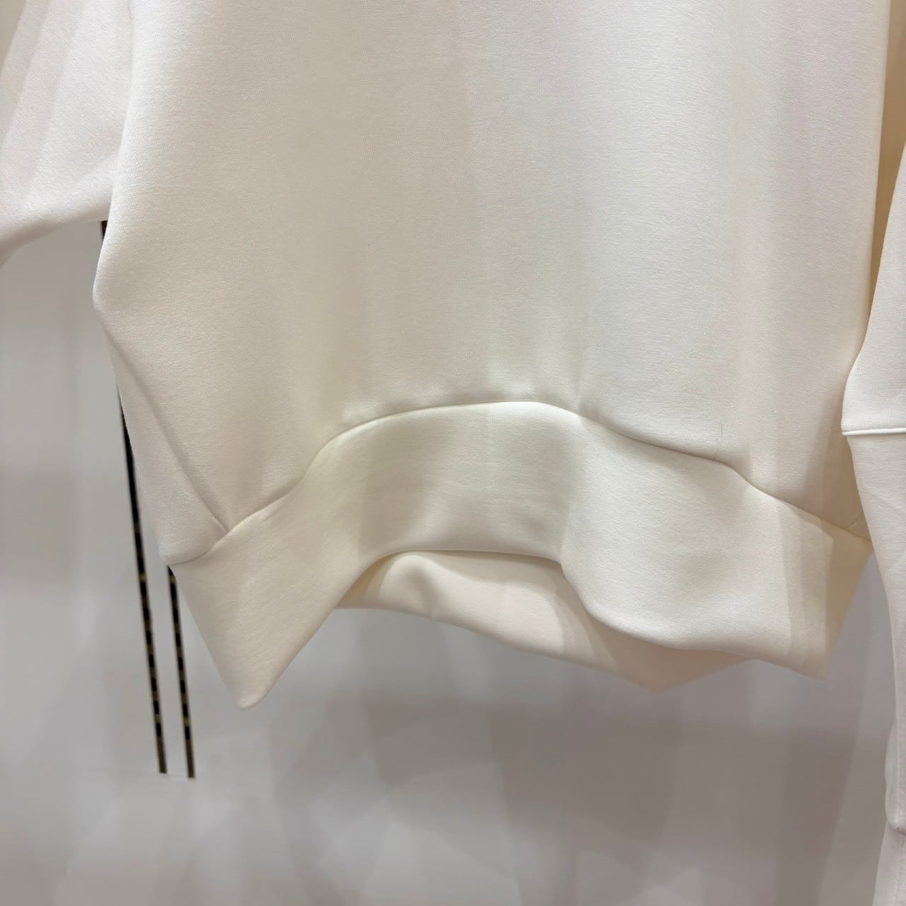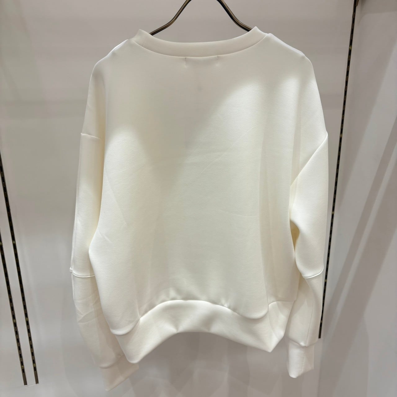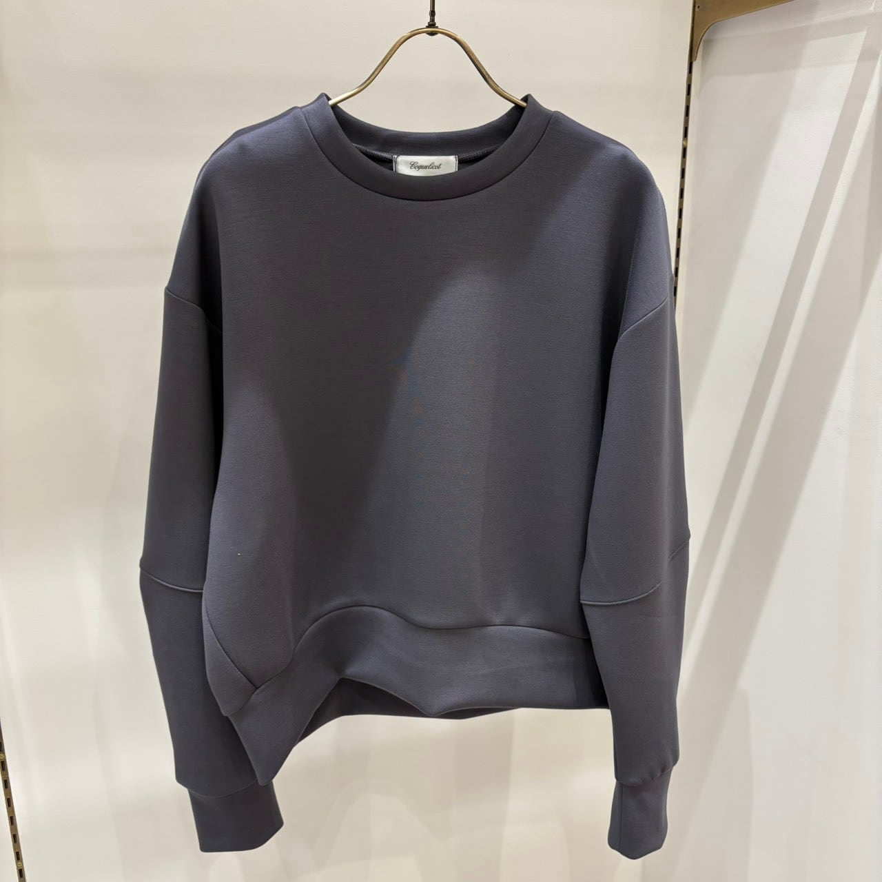 柔らかくて少しハリのあるポンチ素材を使用した、袖をカーブさせたトップス。
