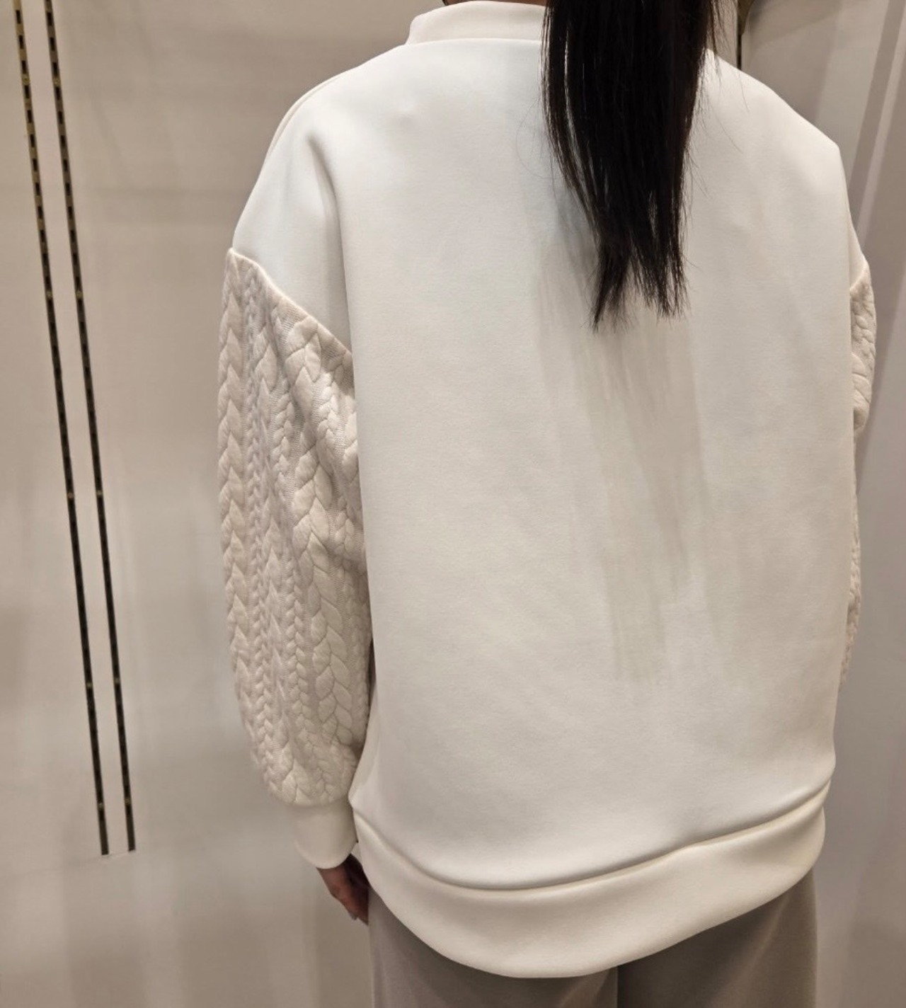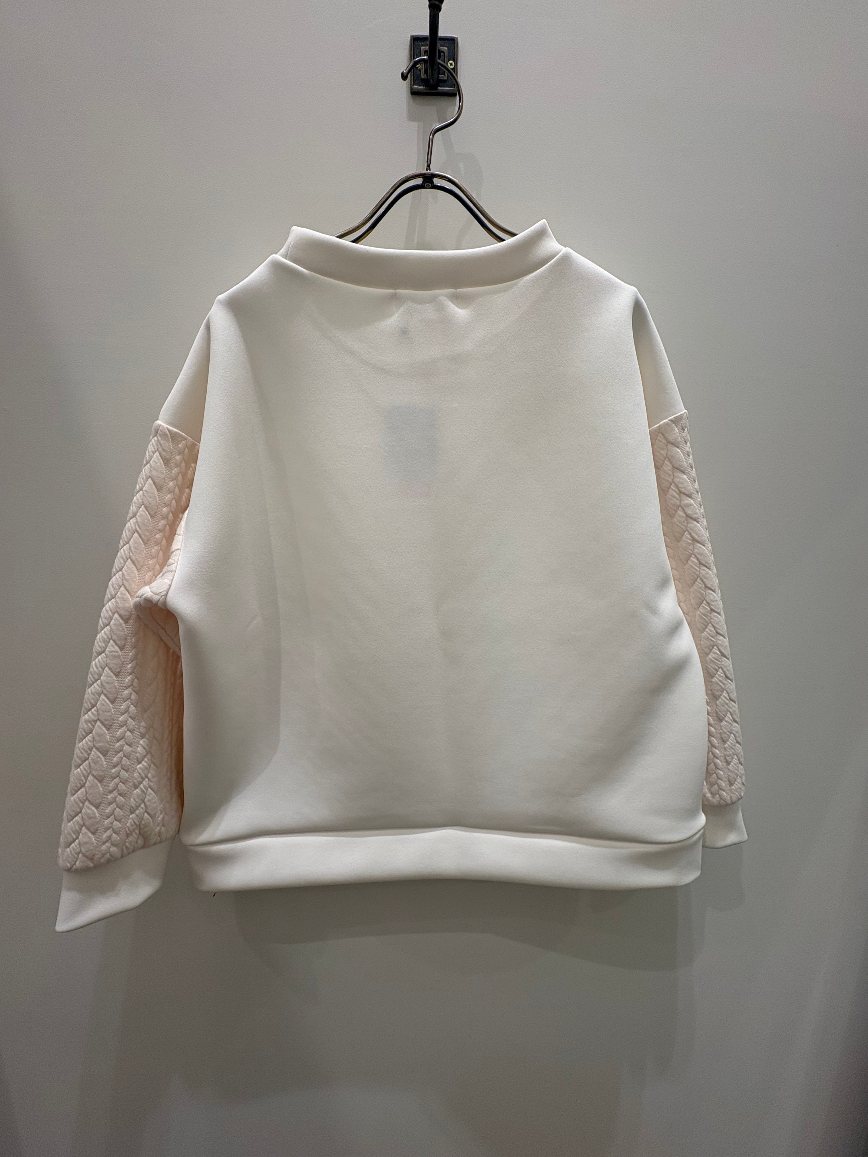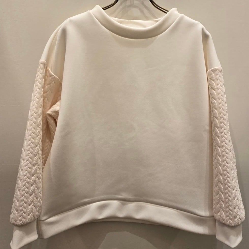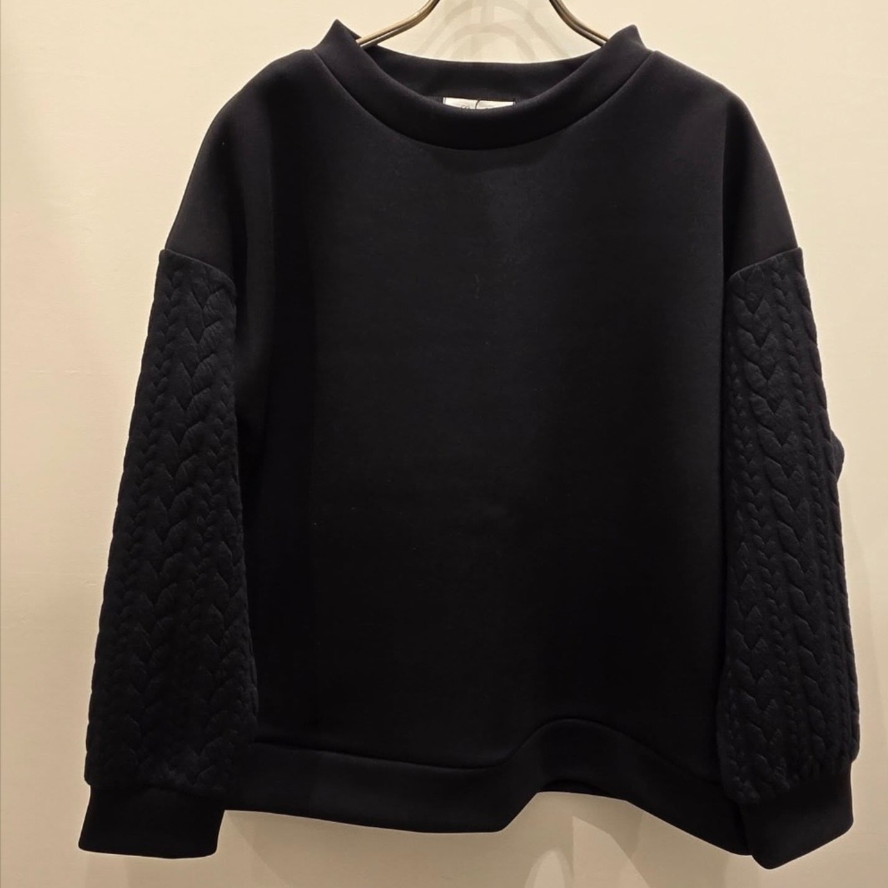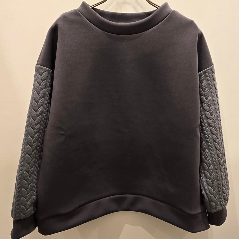 お袖のケーブル柄がアクセントになったプルオーバー素材となっております。