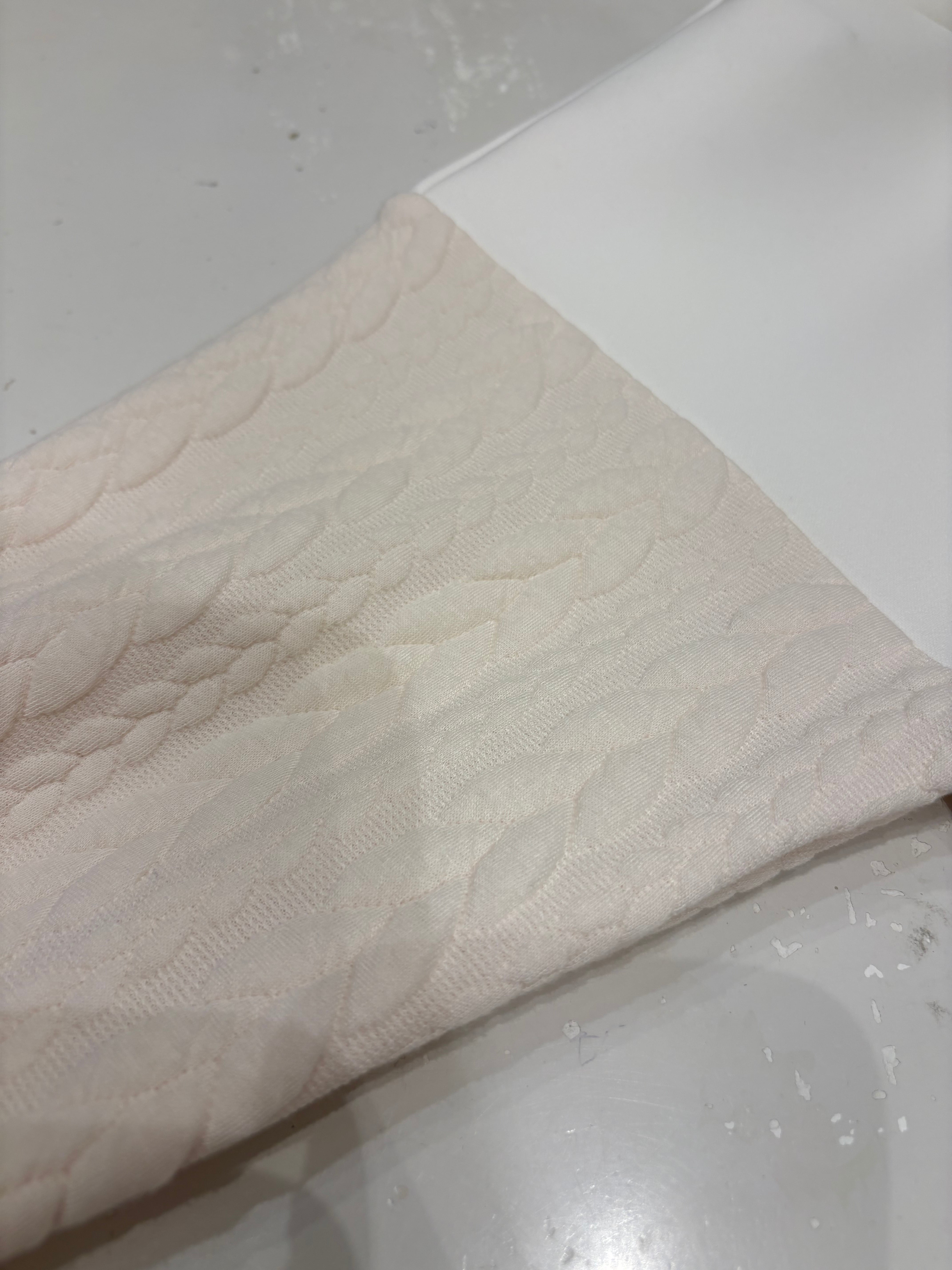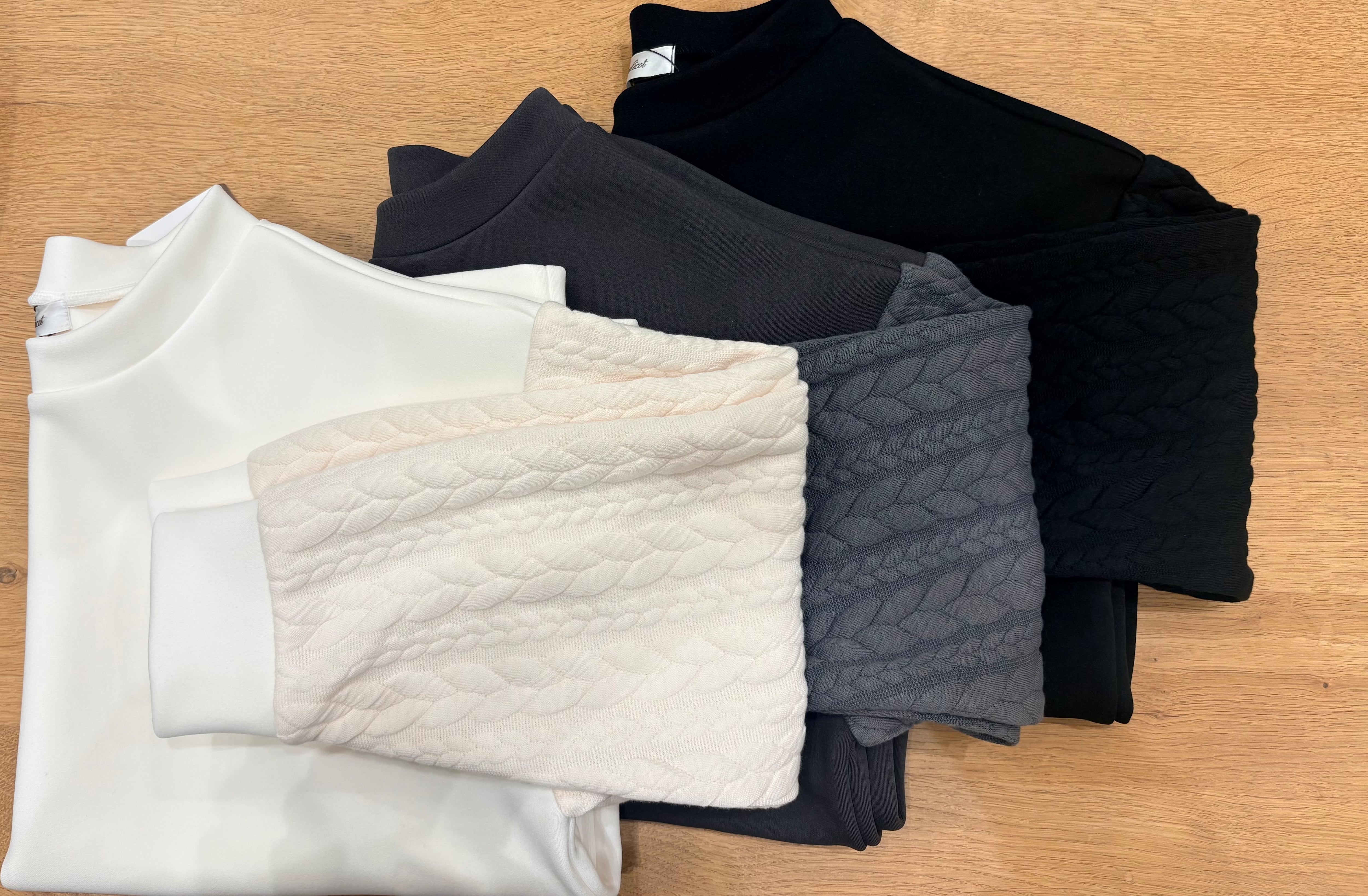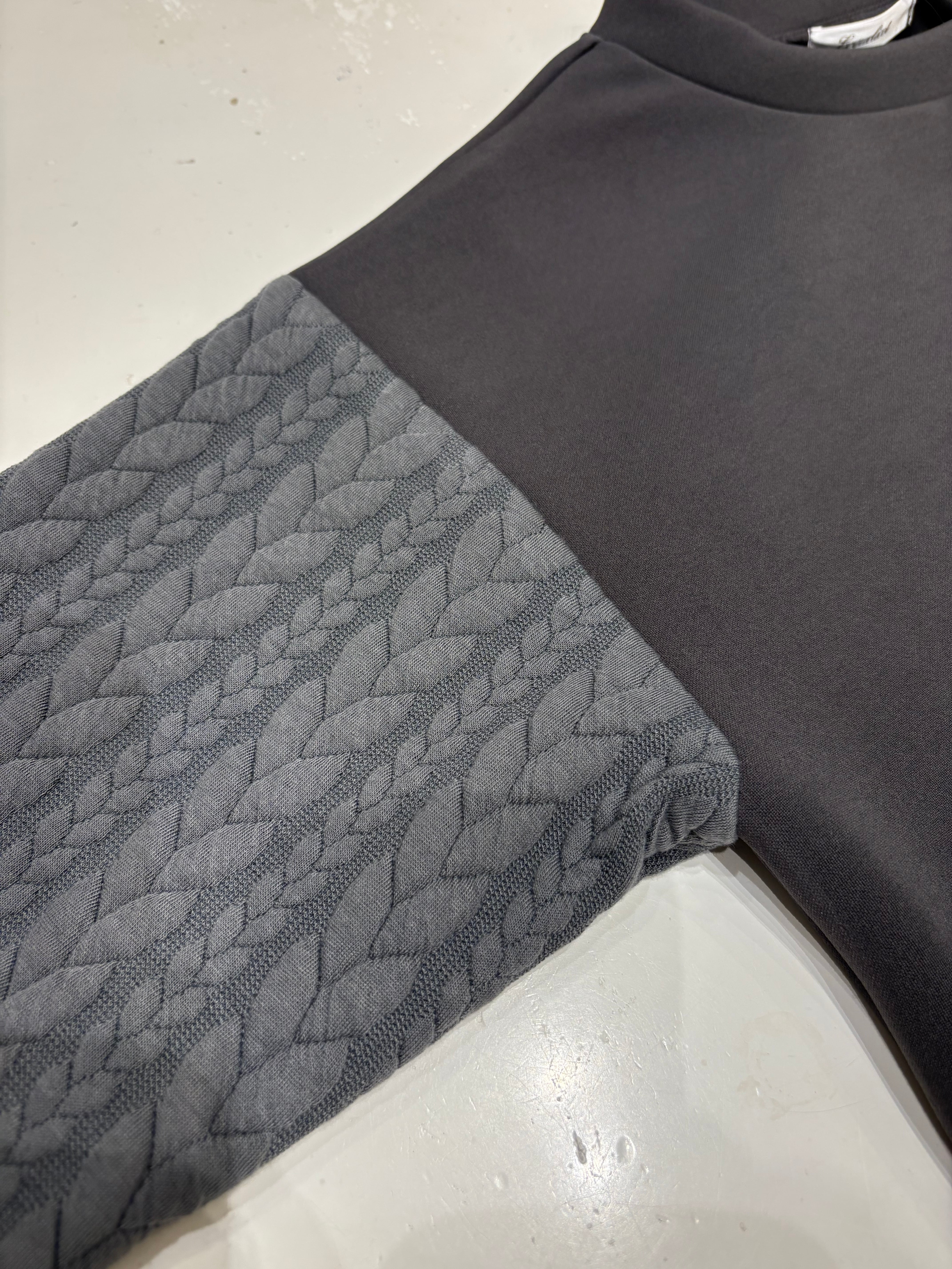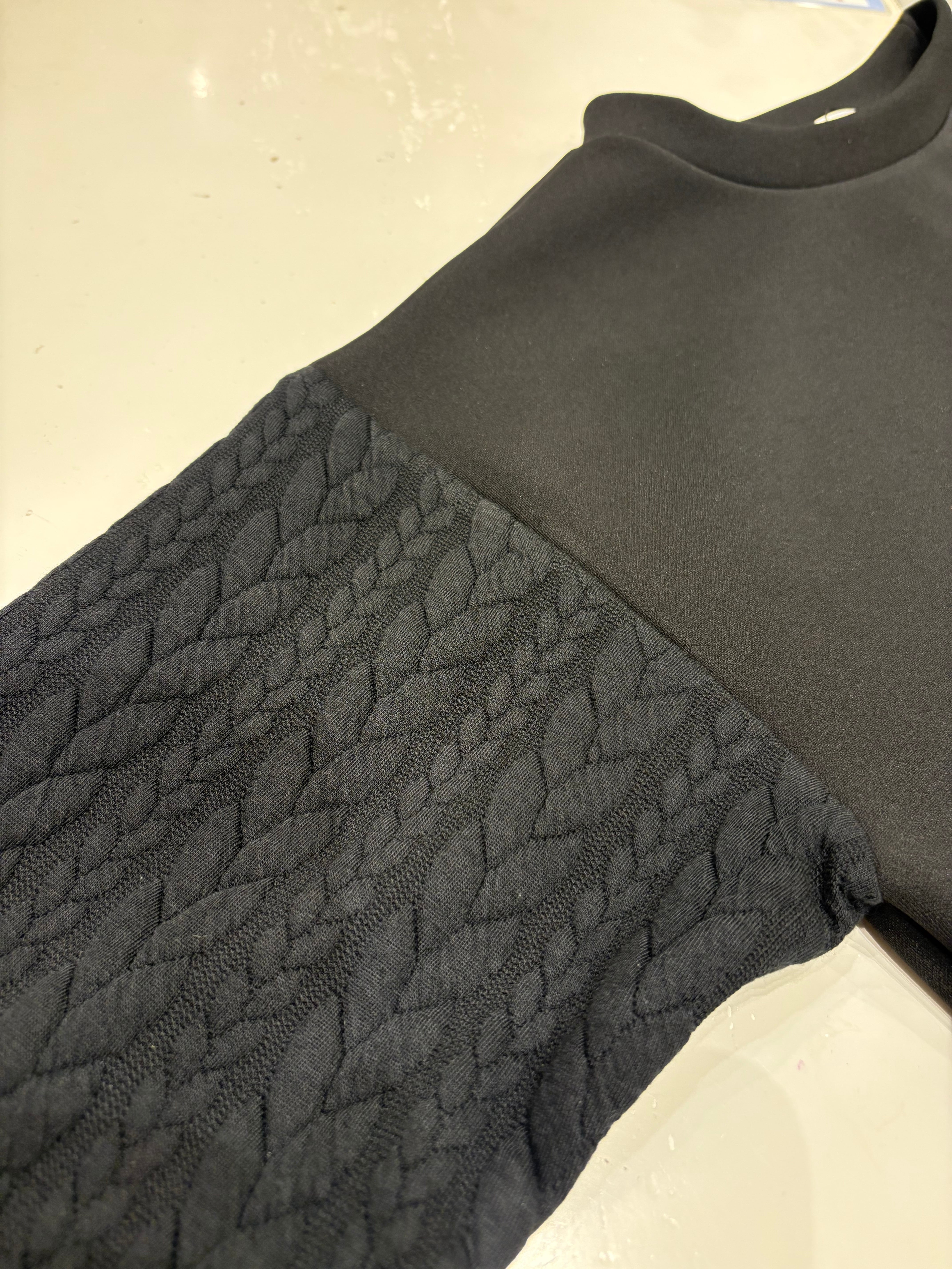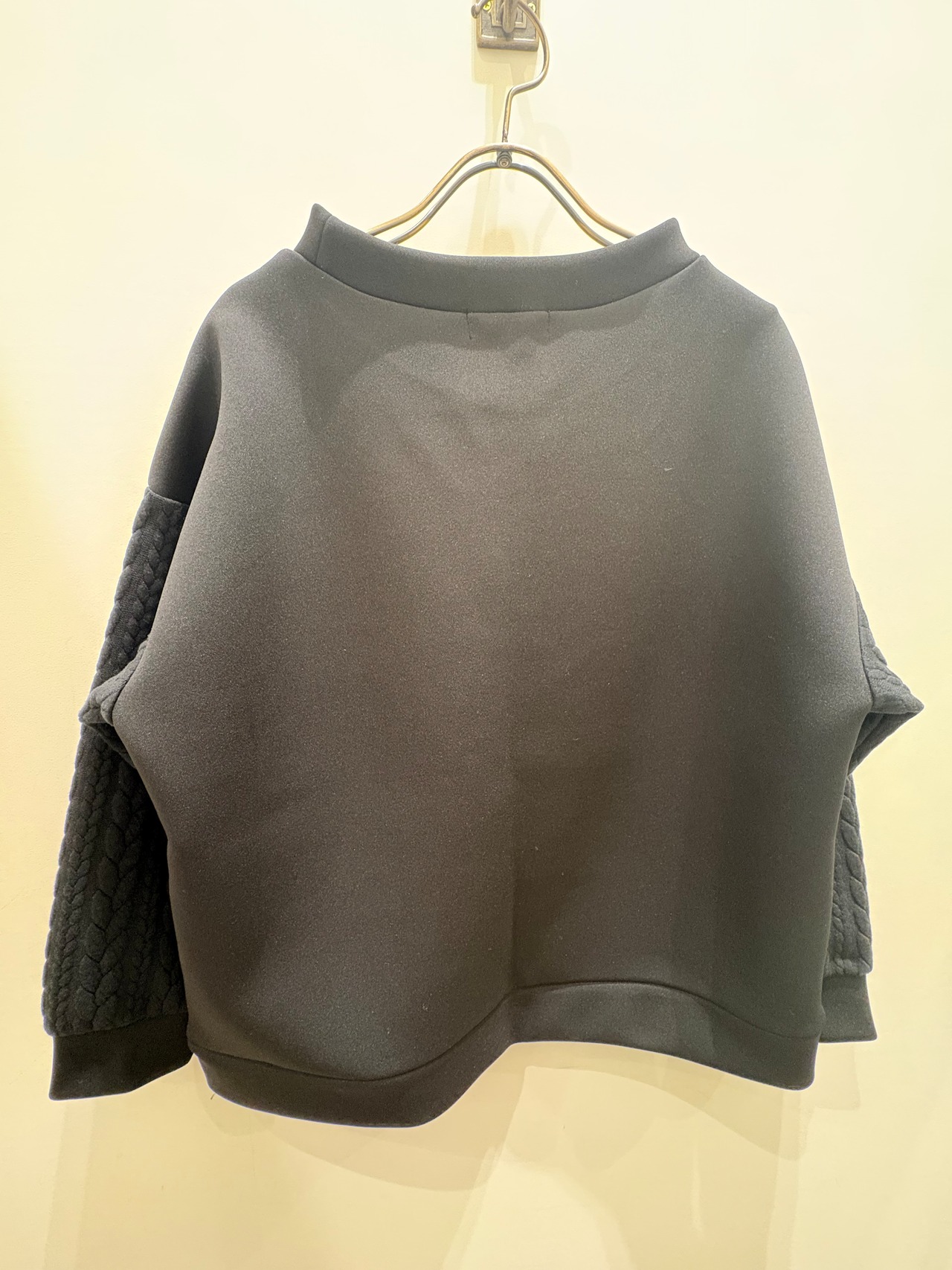 お袖のケーブル柄がアクセントになったプルオーバー素材となっております。