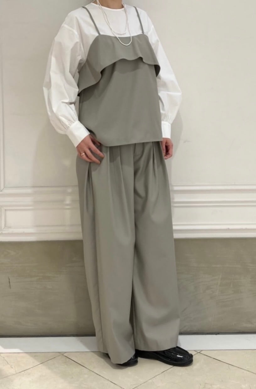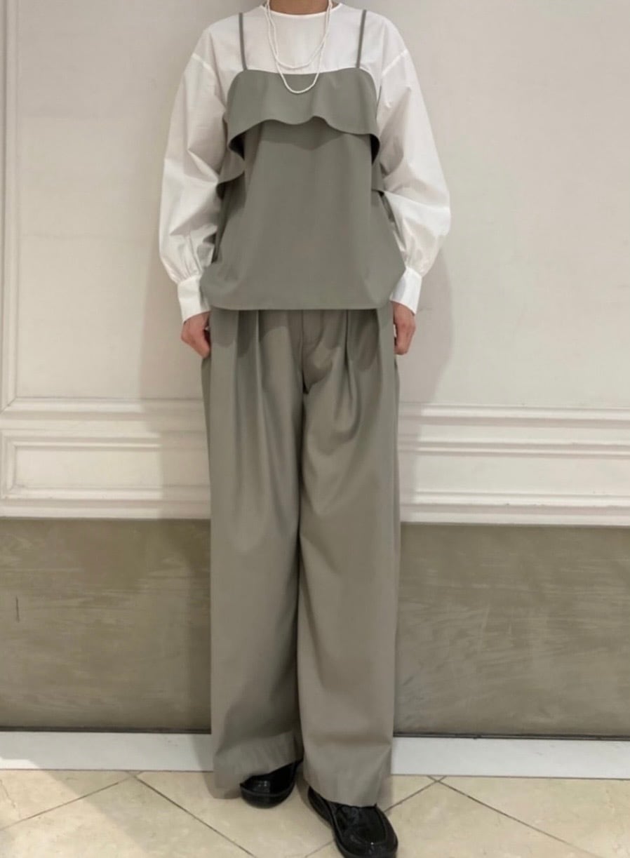 ウエスト部分にタックが3本入ったワイドパンツ。