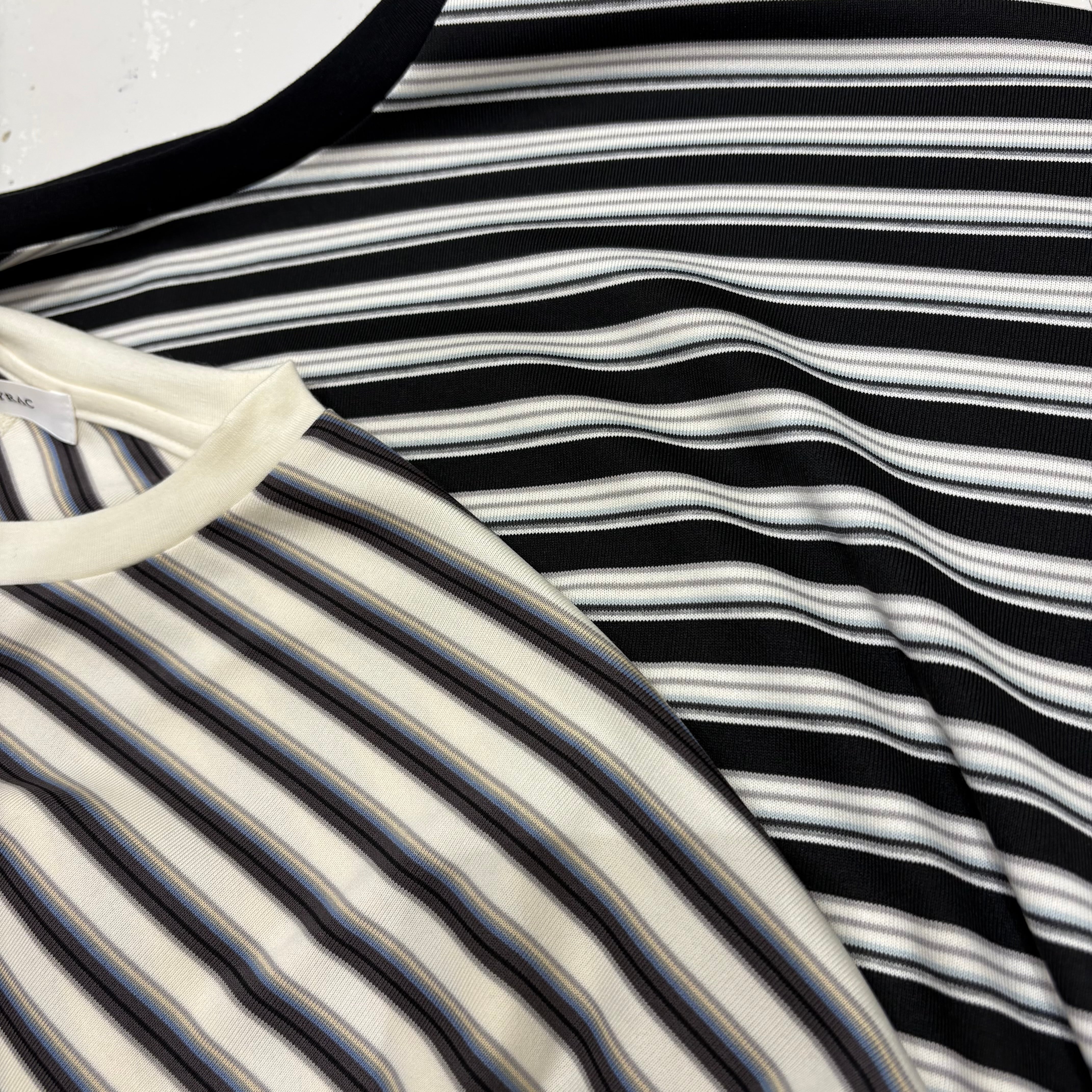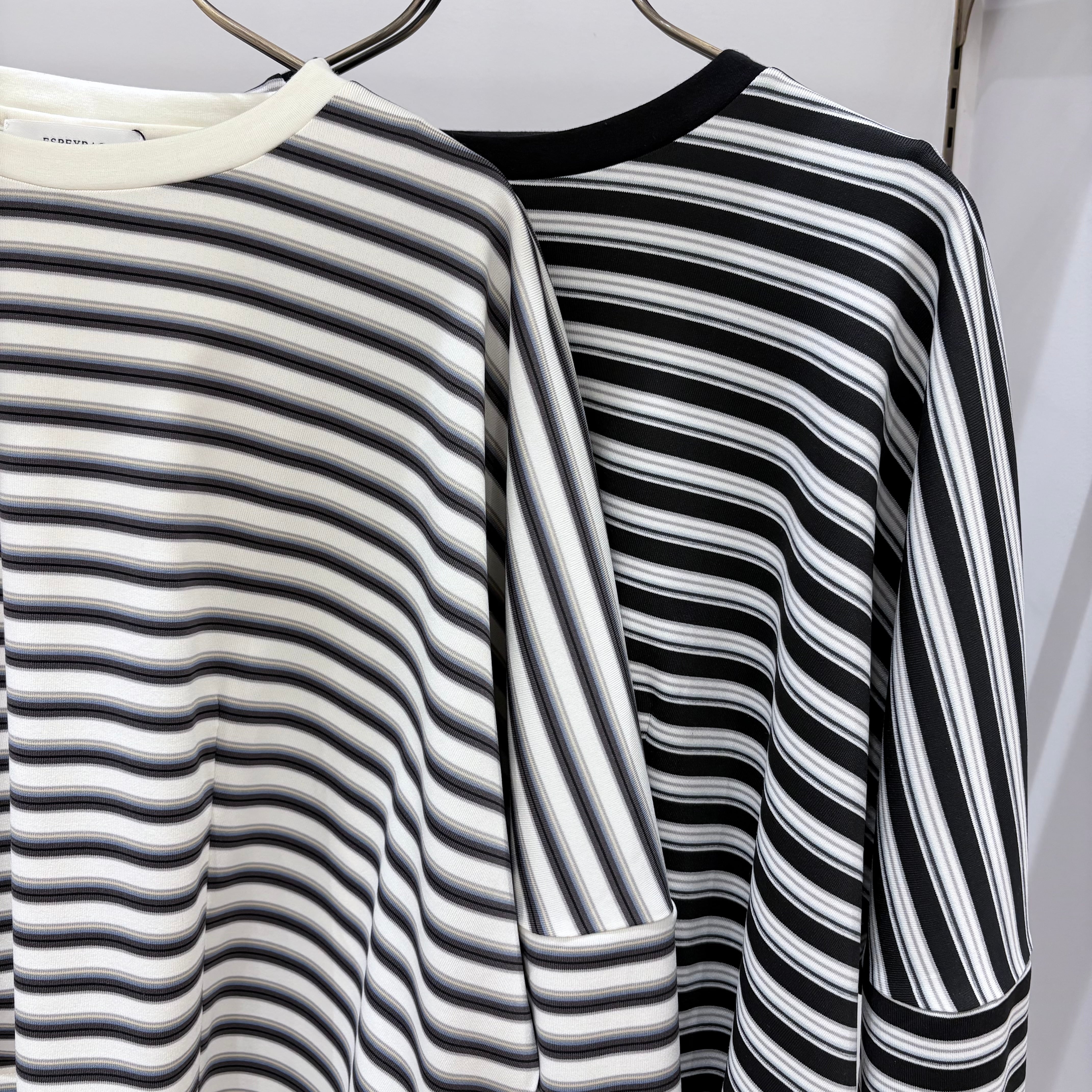 今季はとろみのある柔らかなフライスマルチボーダーでの展開。