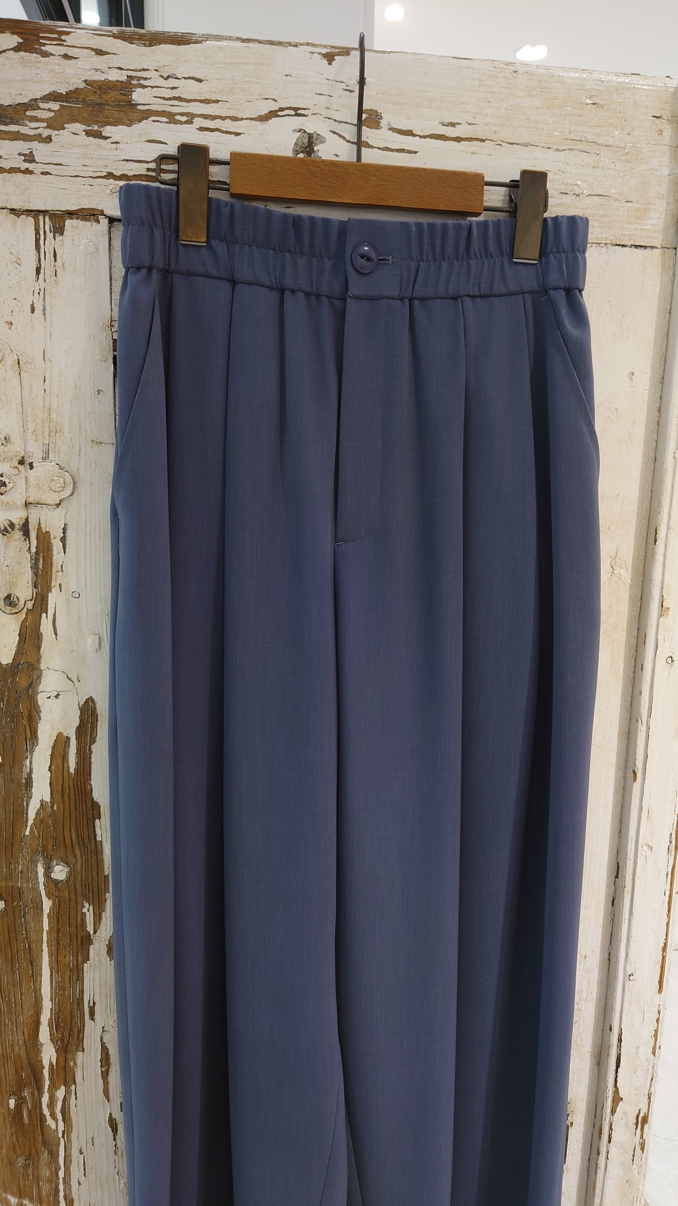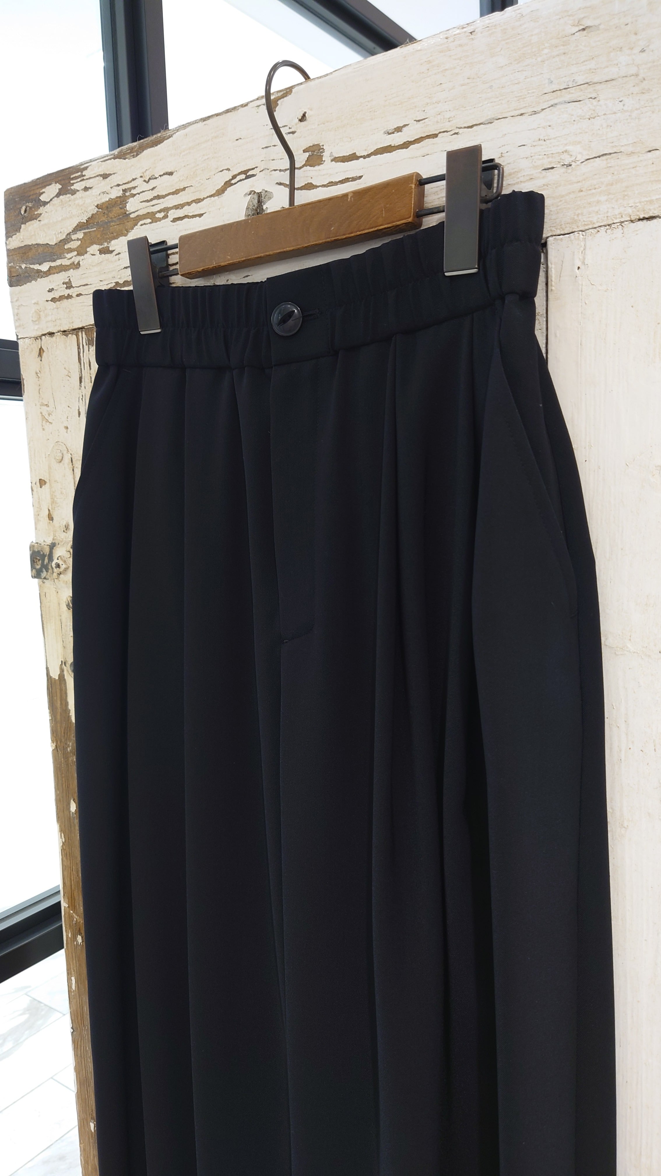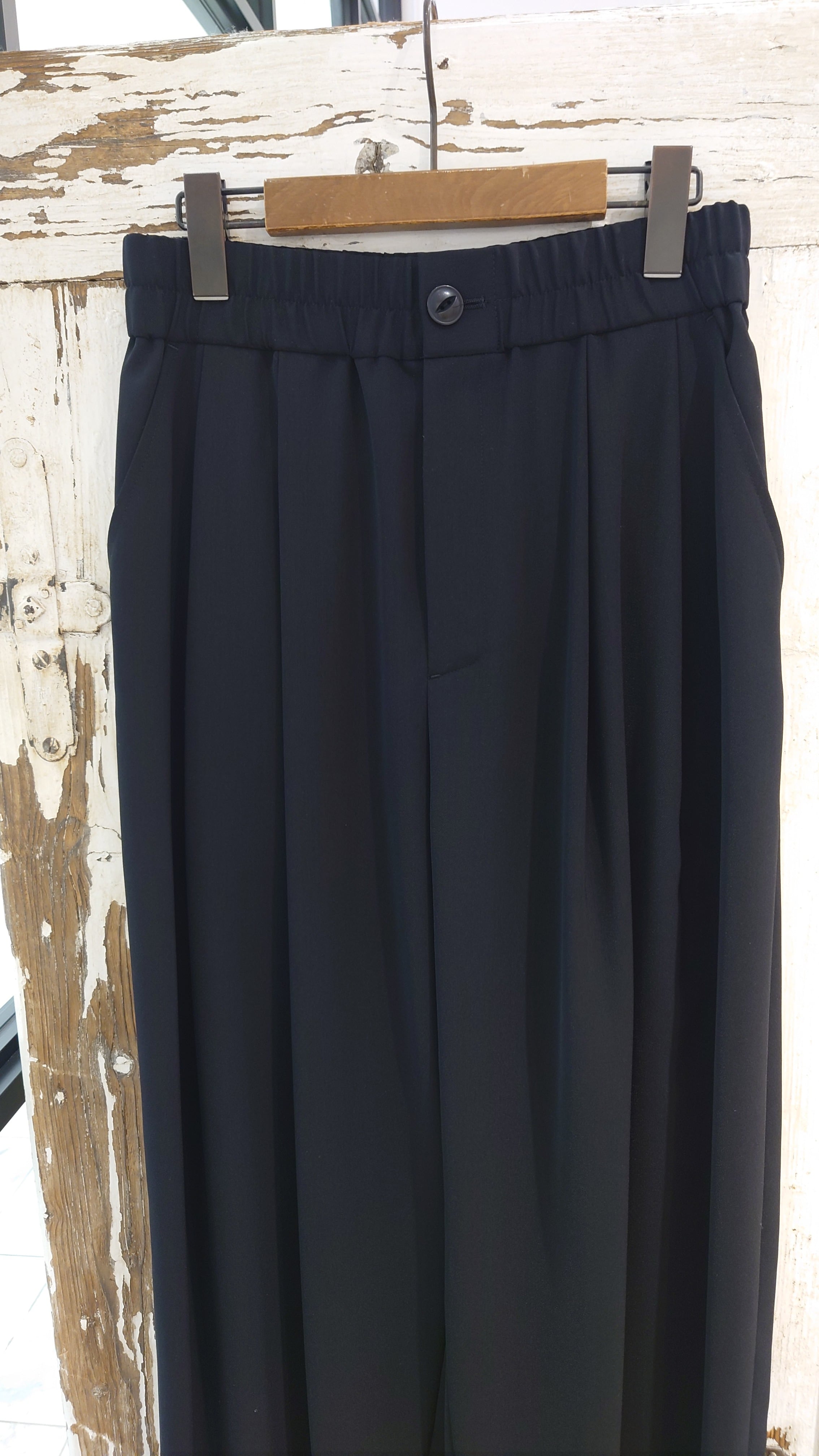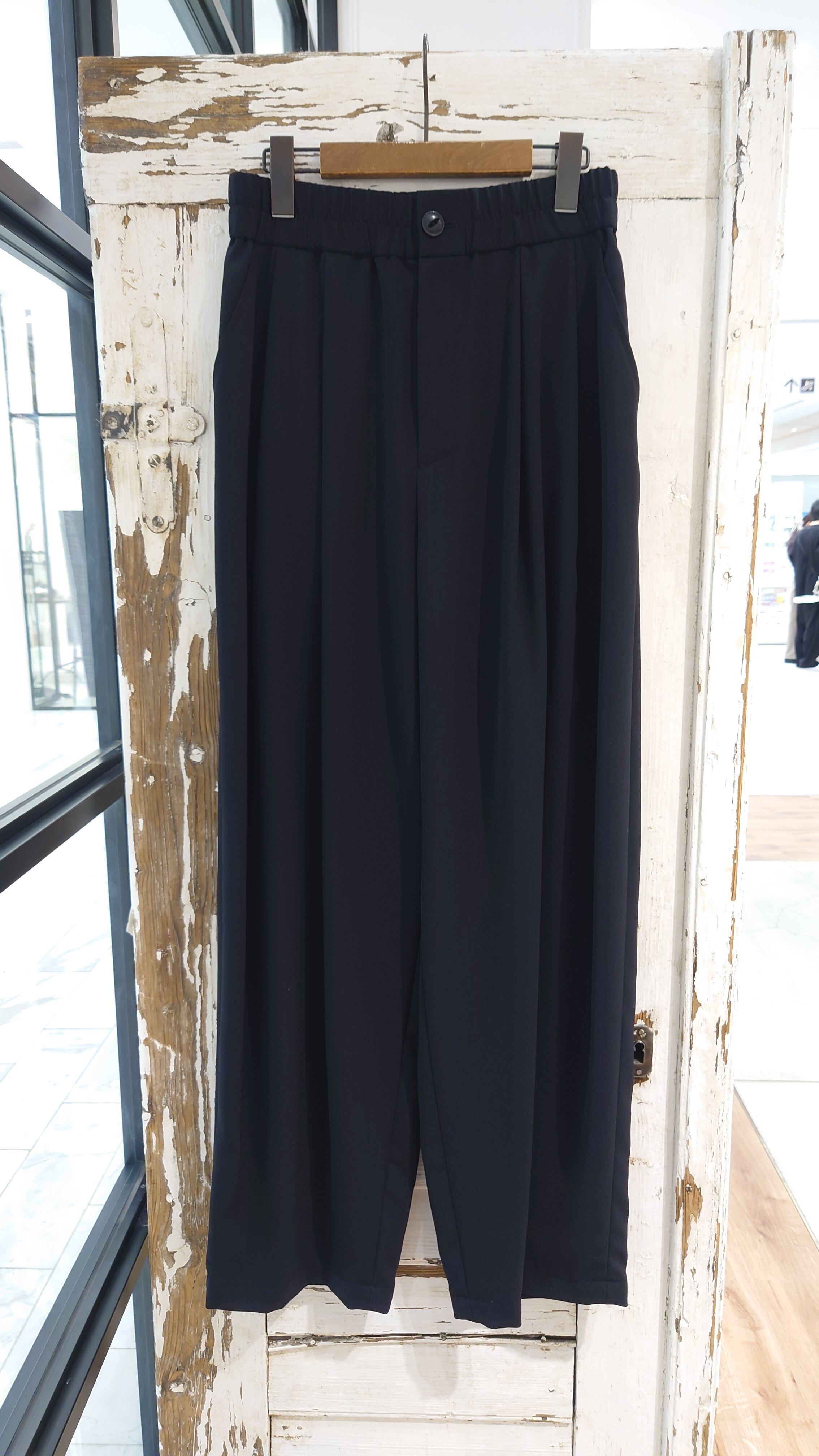 ツータック入りでハイウエストのコクーンパンツ。