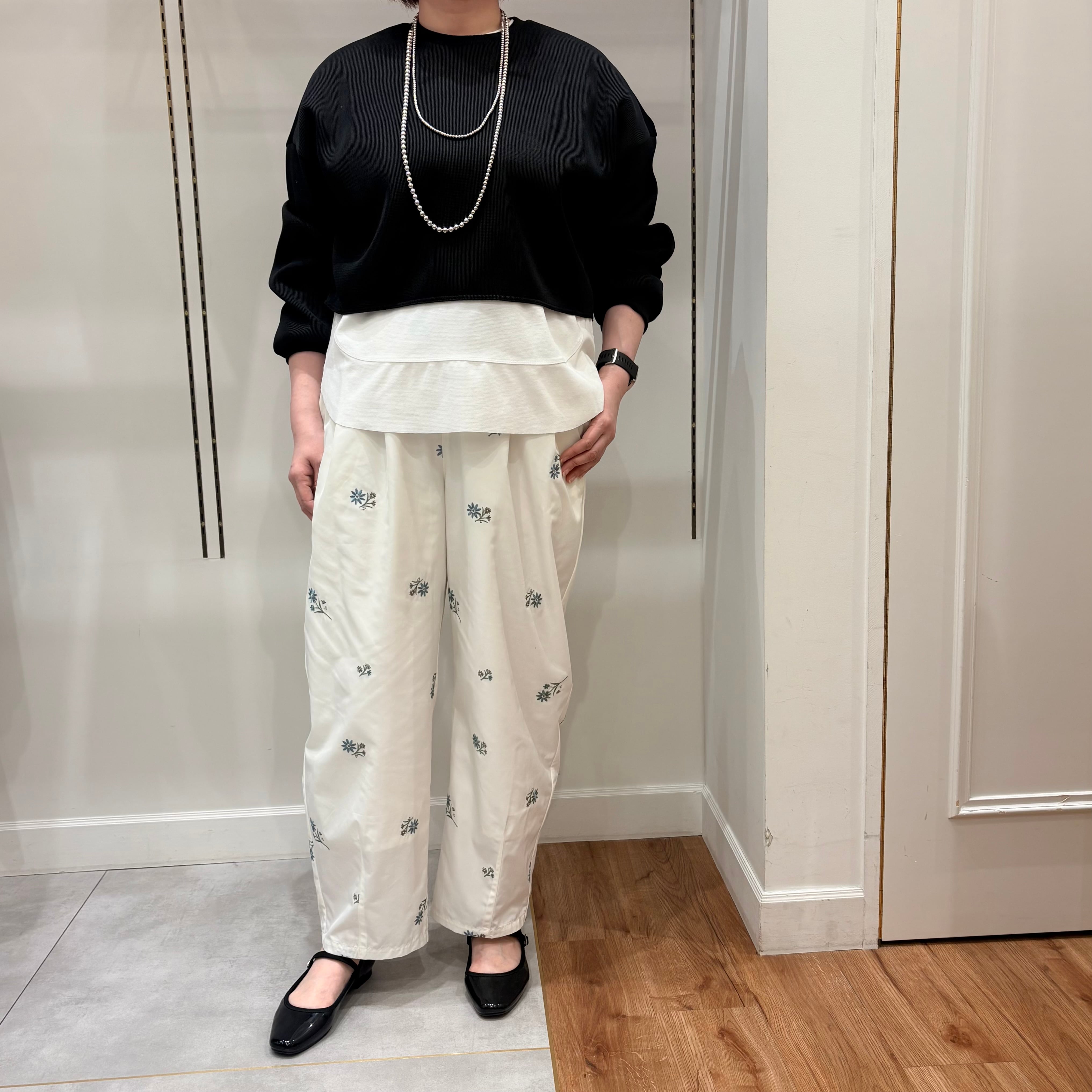 とにかく花刺繍が可愛い、2タックカーブパンツ。
