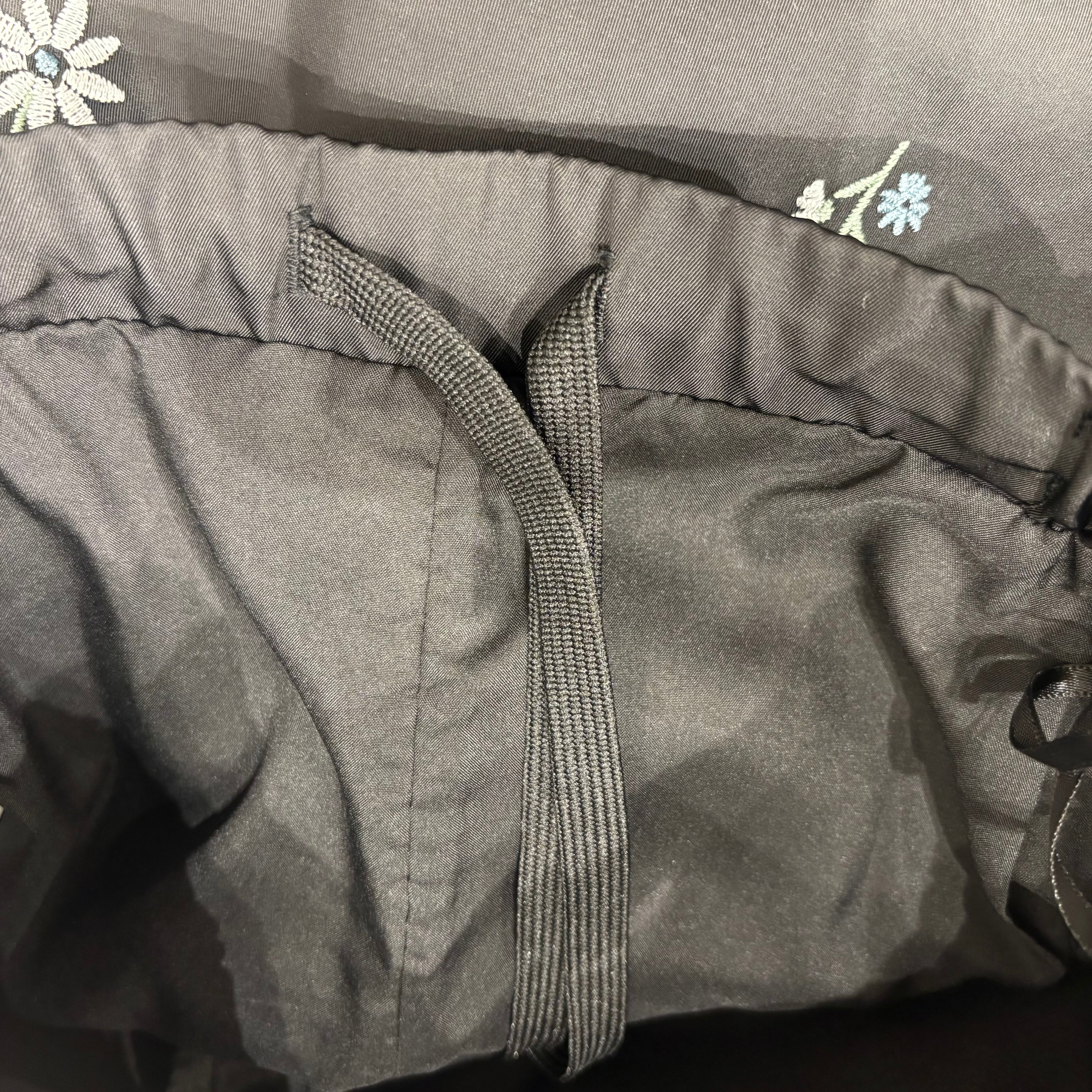 刺繍糸がお肌に当たらないように、脹脛の辺りまで裏地が付いております。