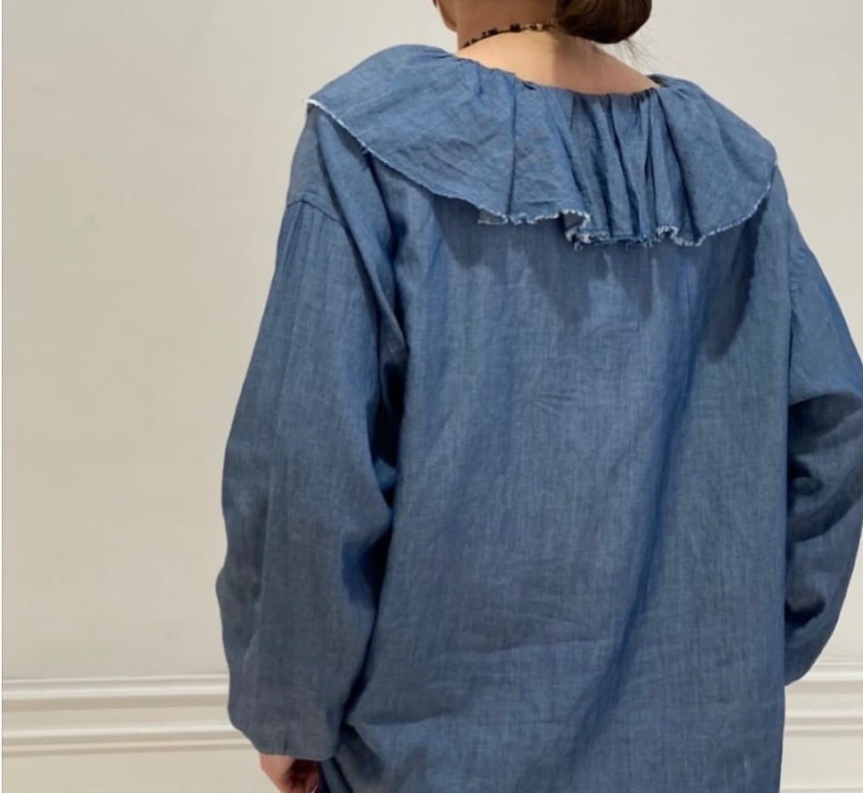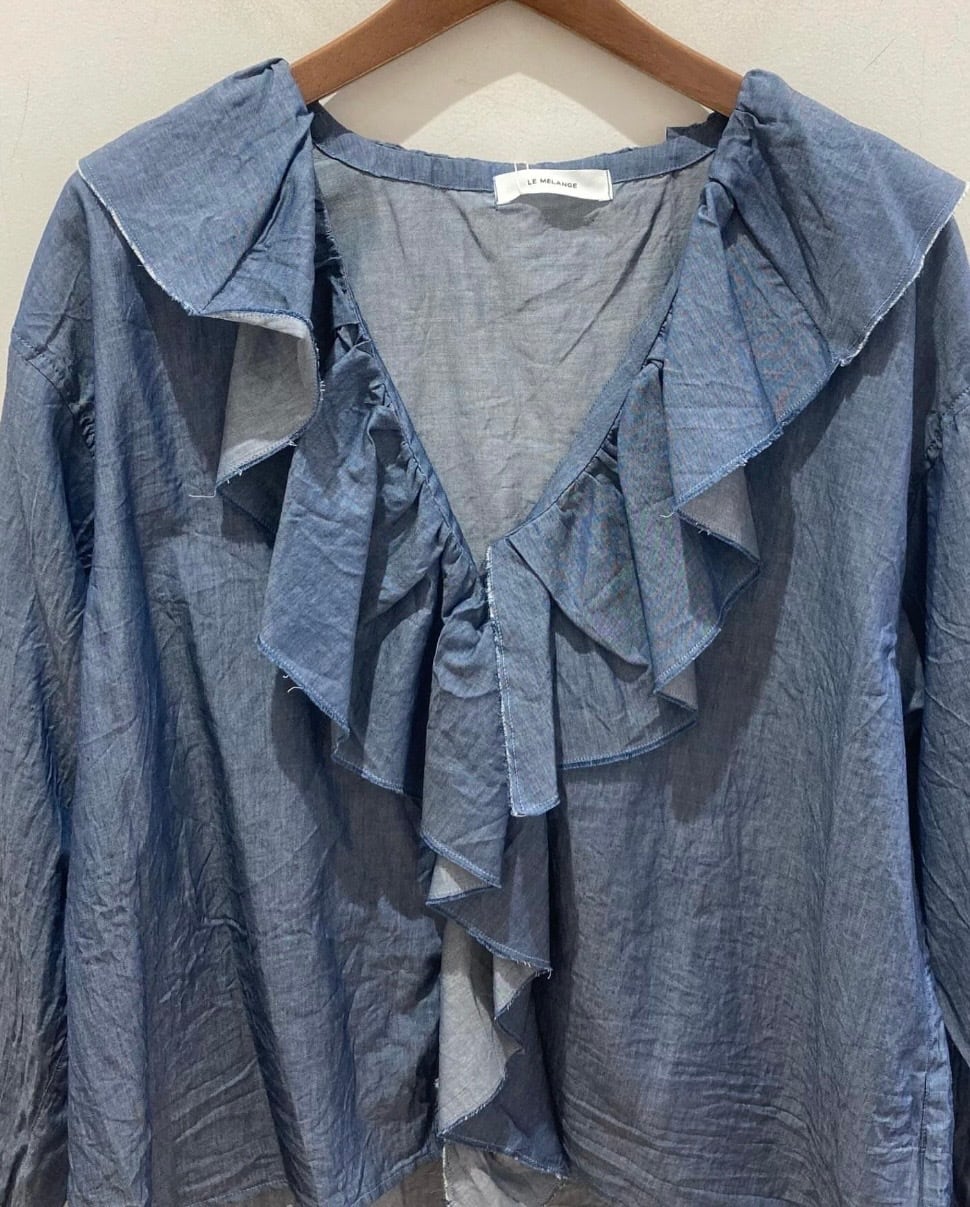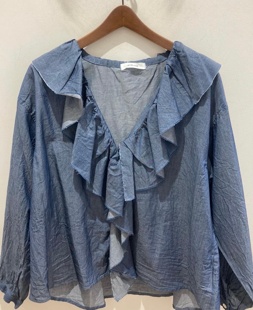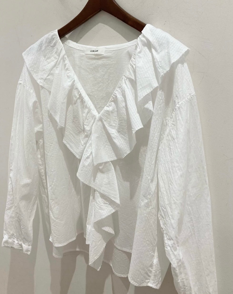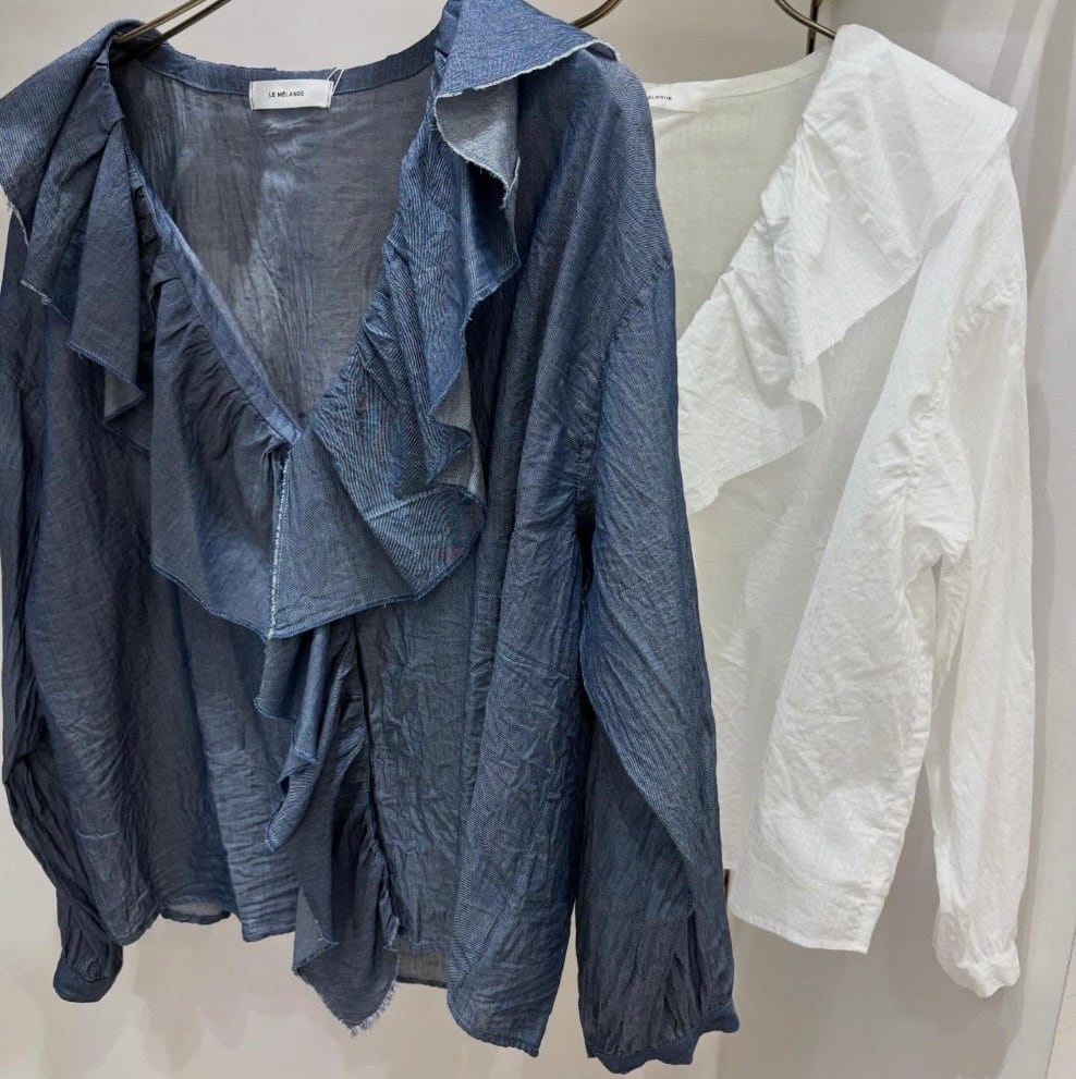 大きなラッフルカラーが目を引く前あきブラウスがオリジナルブランド【ルメランジュ】より入荷しました!