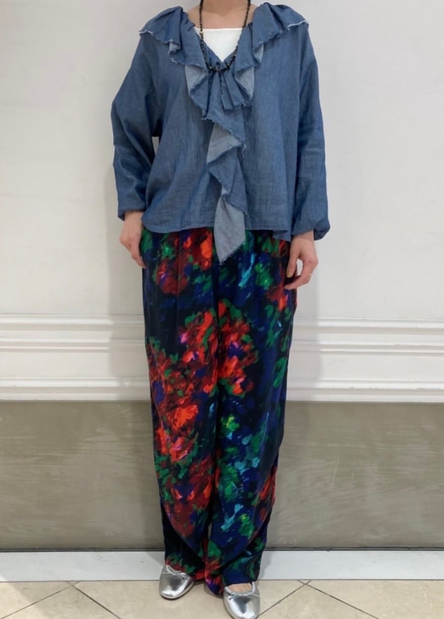 今回のようなビビットな柄ボトム合わせはもちろん、チノ素材やデニム×デニムなどの幅広いコーデでお楽しみ頂けます☆