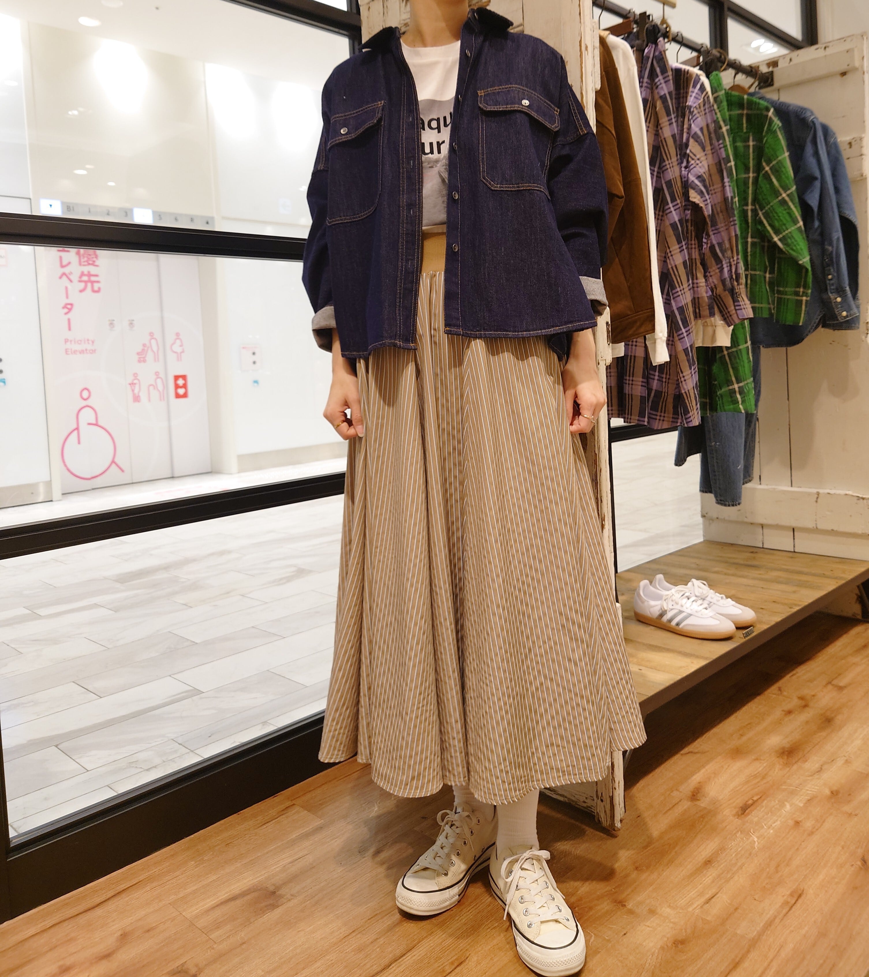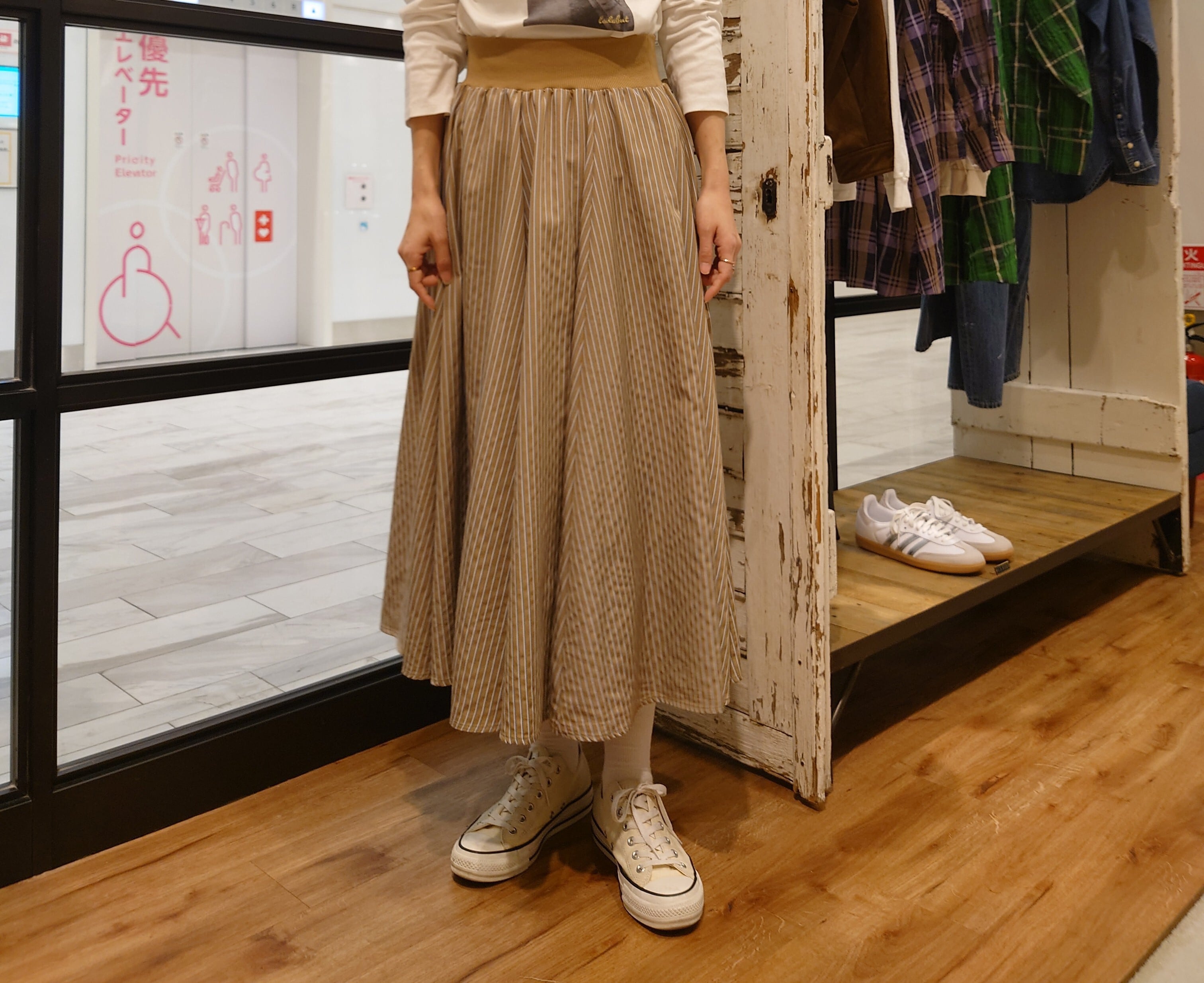 今回は、coquelicot別注カラーのストライプ柄スカート。