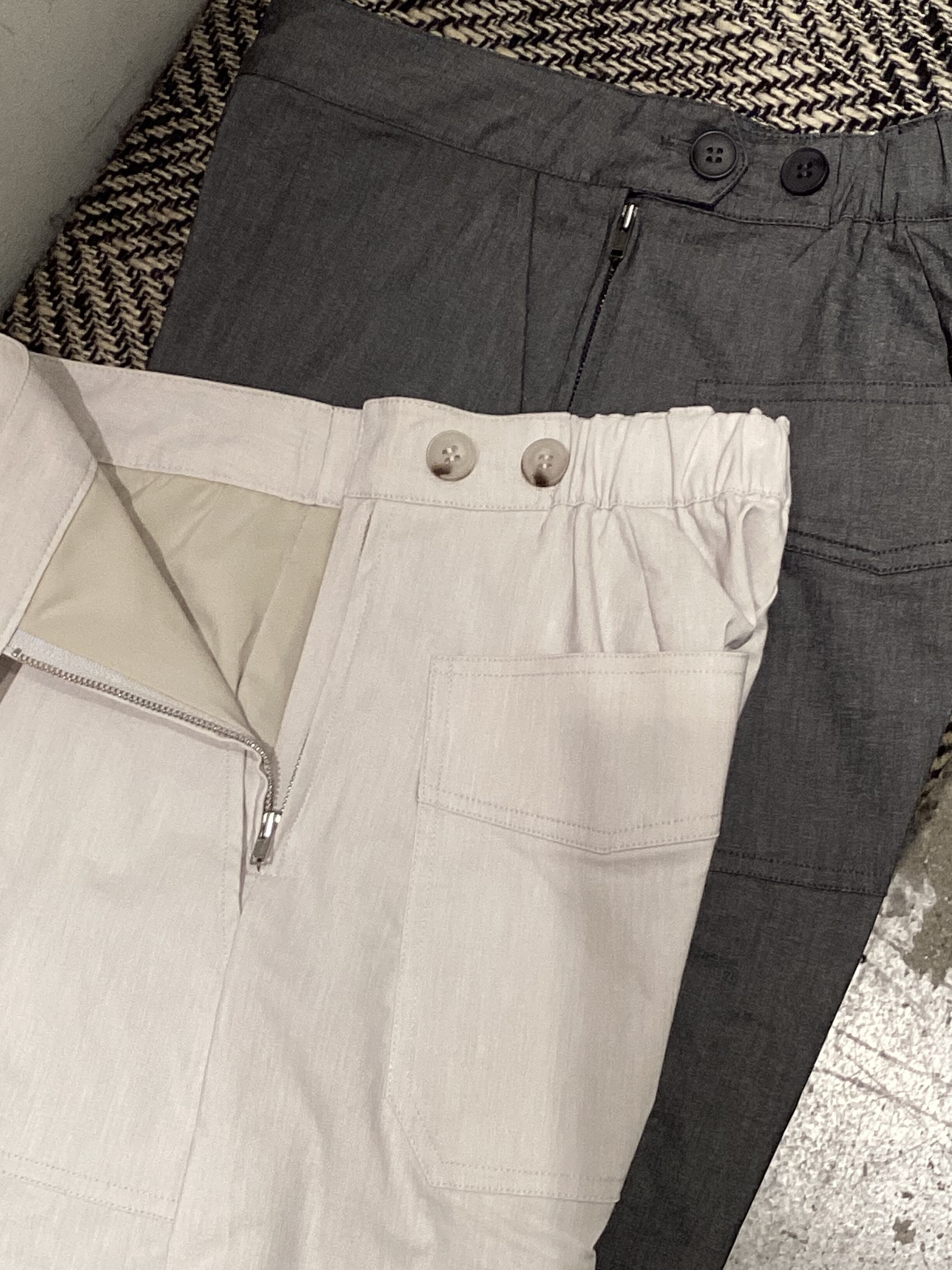 グレージュは膝下までの裏地付き。