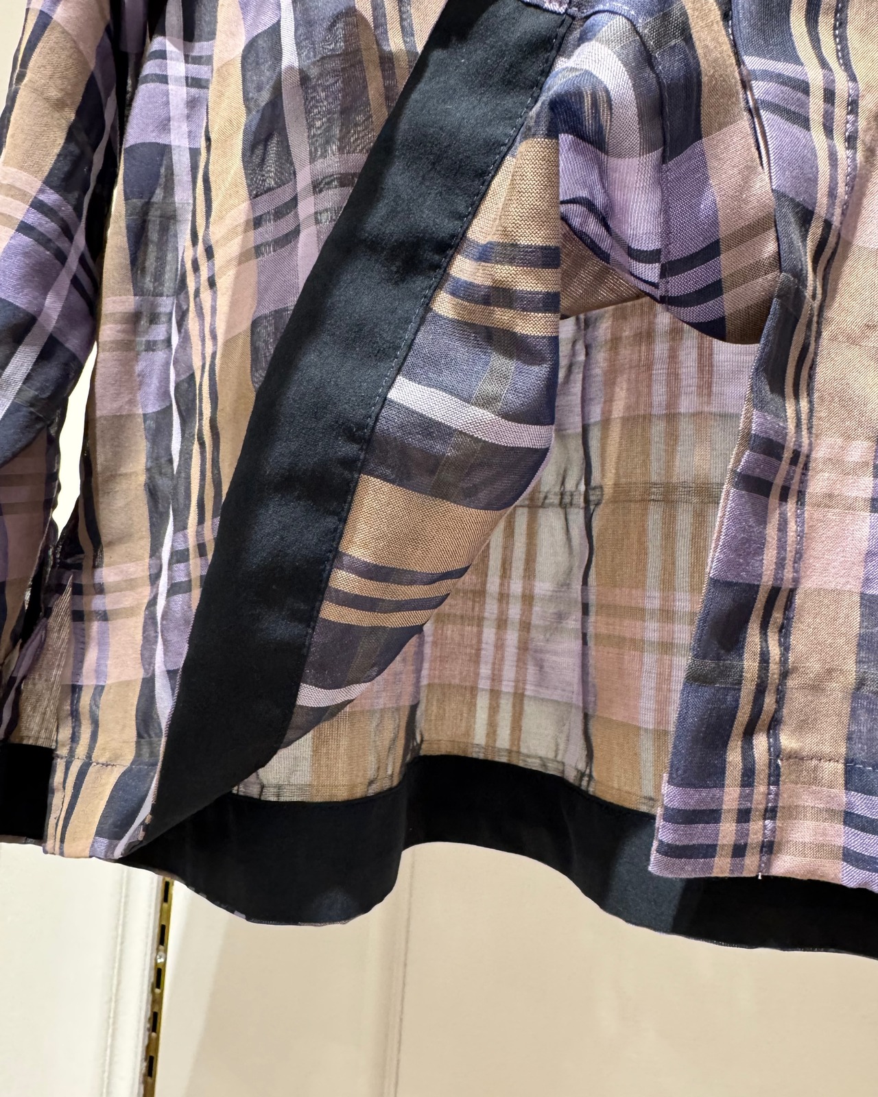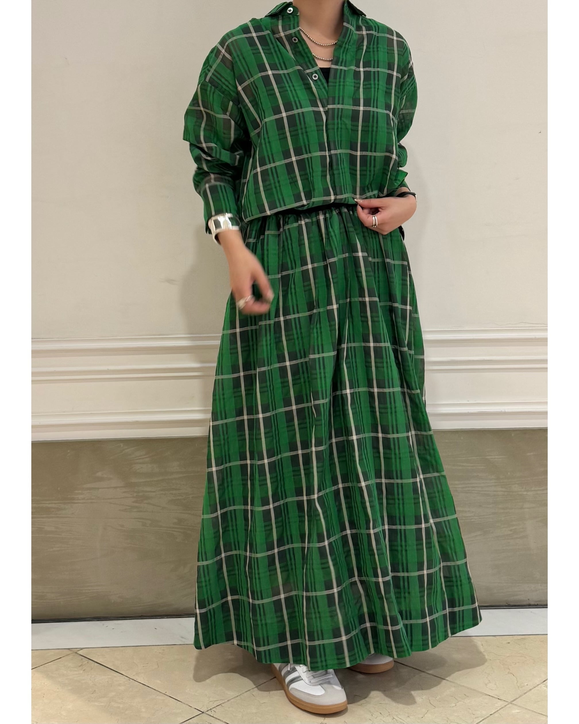 "シアー部分"と"マットな部分"に織り分けられた、チェック柄スカートです。